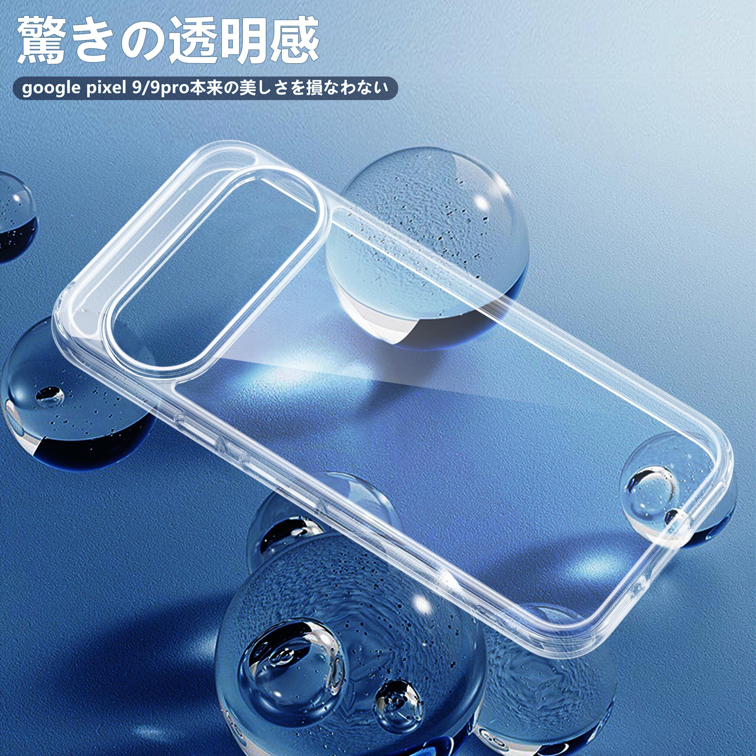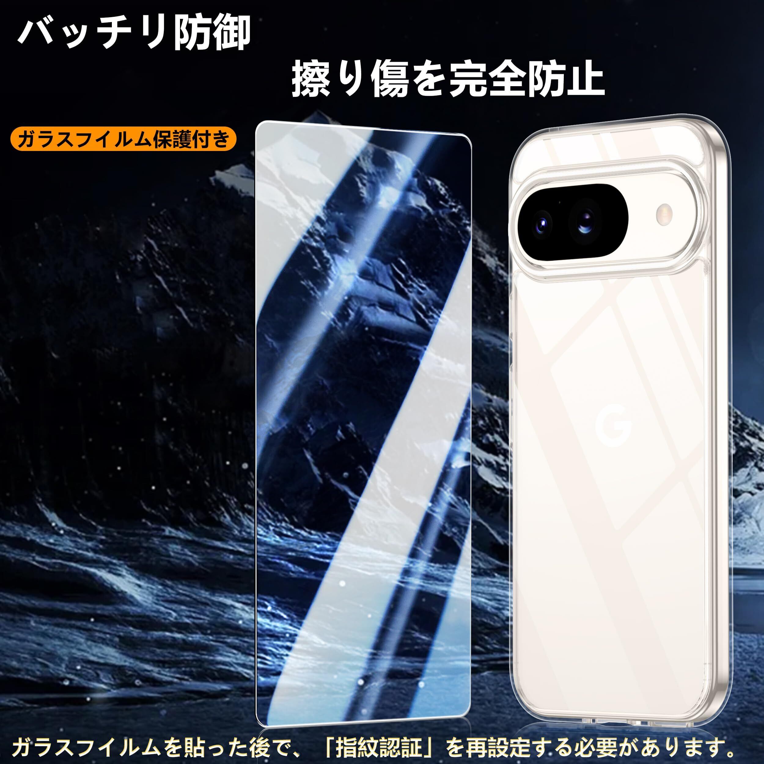 Google Pixel 9 用 ケース Pixel 9 Pro ケース クリア ガラスフイルム保護付き 黄変防止 グーグルピクセル9/9pro 耐衝撃 指紋防止 落下防止 耐久性 ストラップホール付き 薄型 軽量 ソフトカバー ワイヤレス充電対応 google ピクセル9/9pro