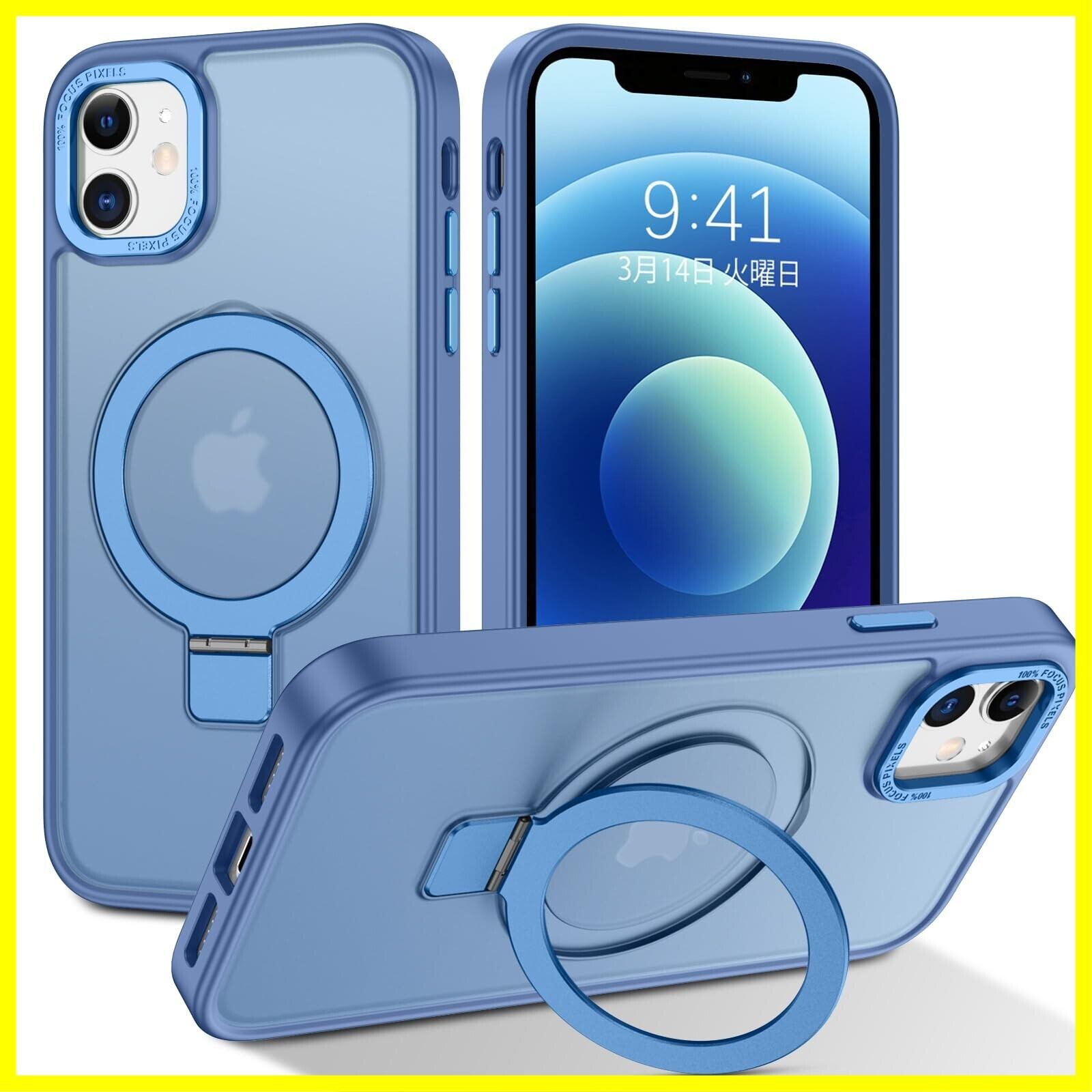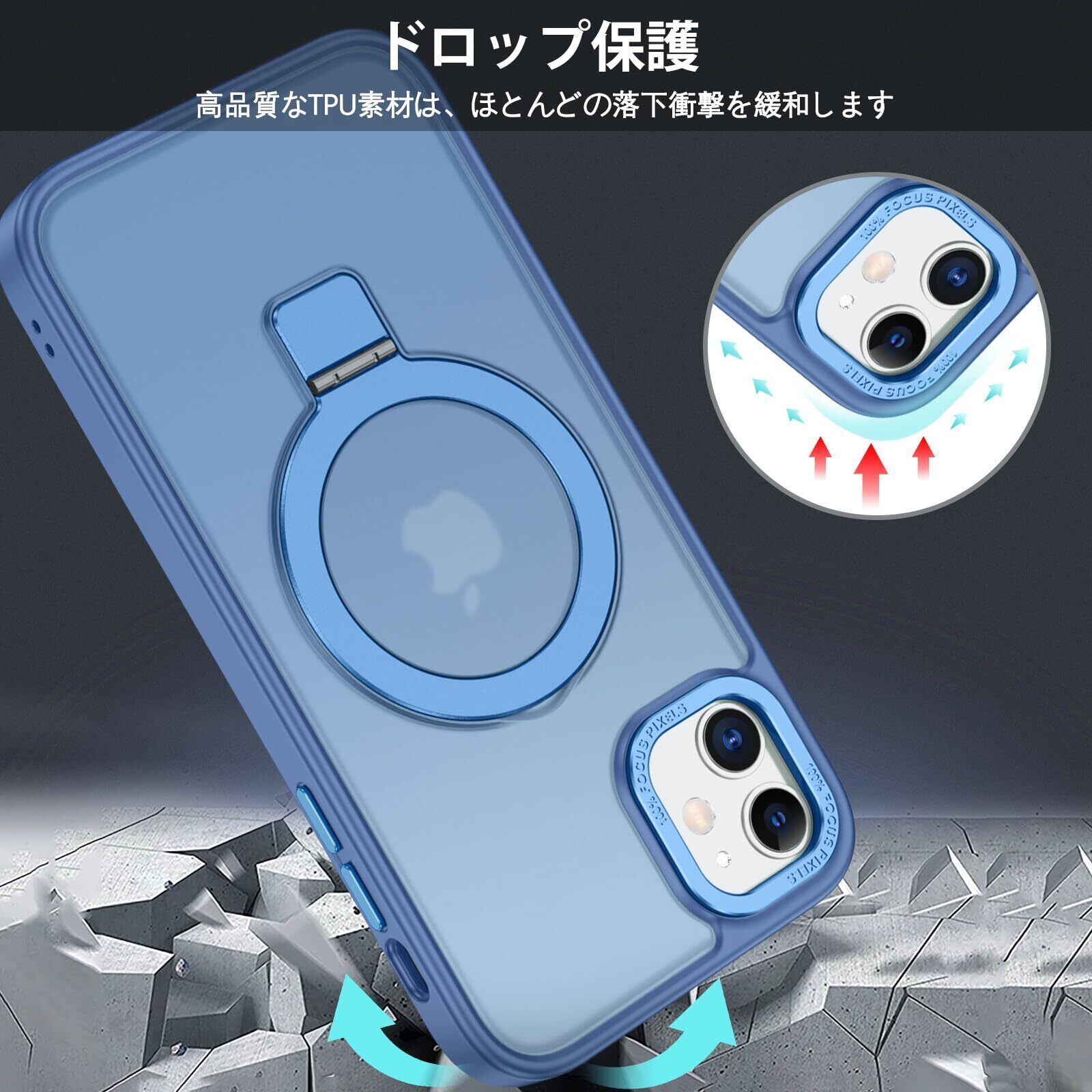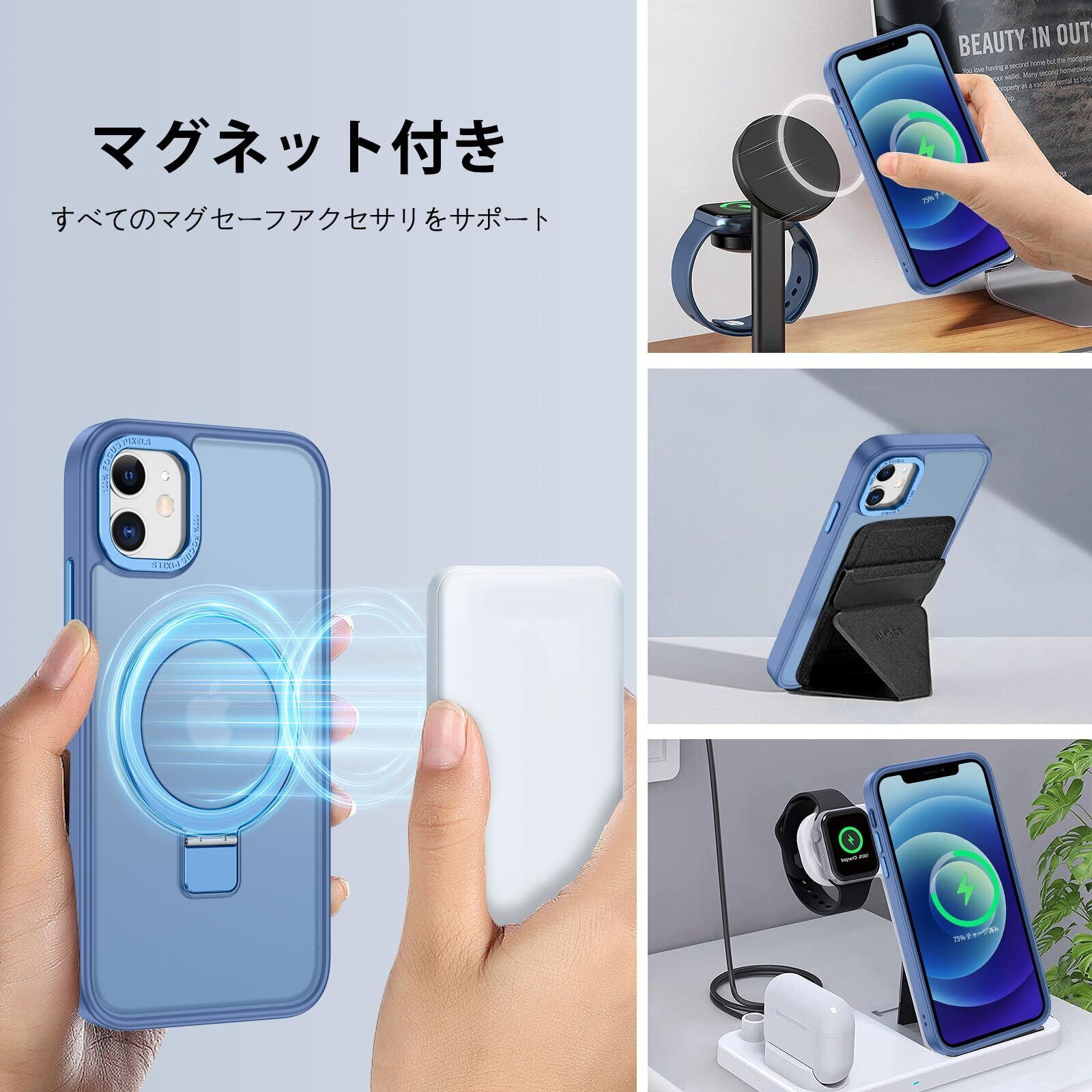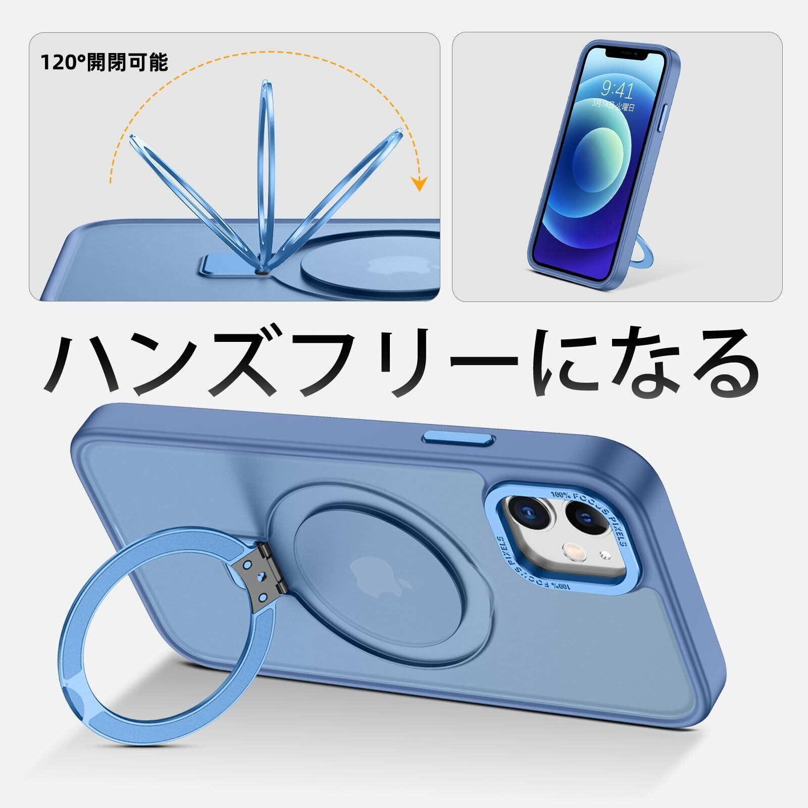 DUEDUE iPhone 12 Mini ケース MagSafe対応 アイフォン12mini ケース マグネット搭載 スタンド機能 120°開閉可能 ブルー 指紋防止 耐衝撃 一体型 薄型 TPUケース 車載ホルダー対応 ワイヤレス充電 全面保護