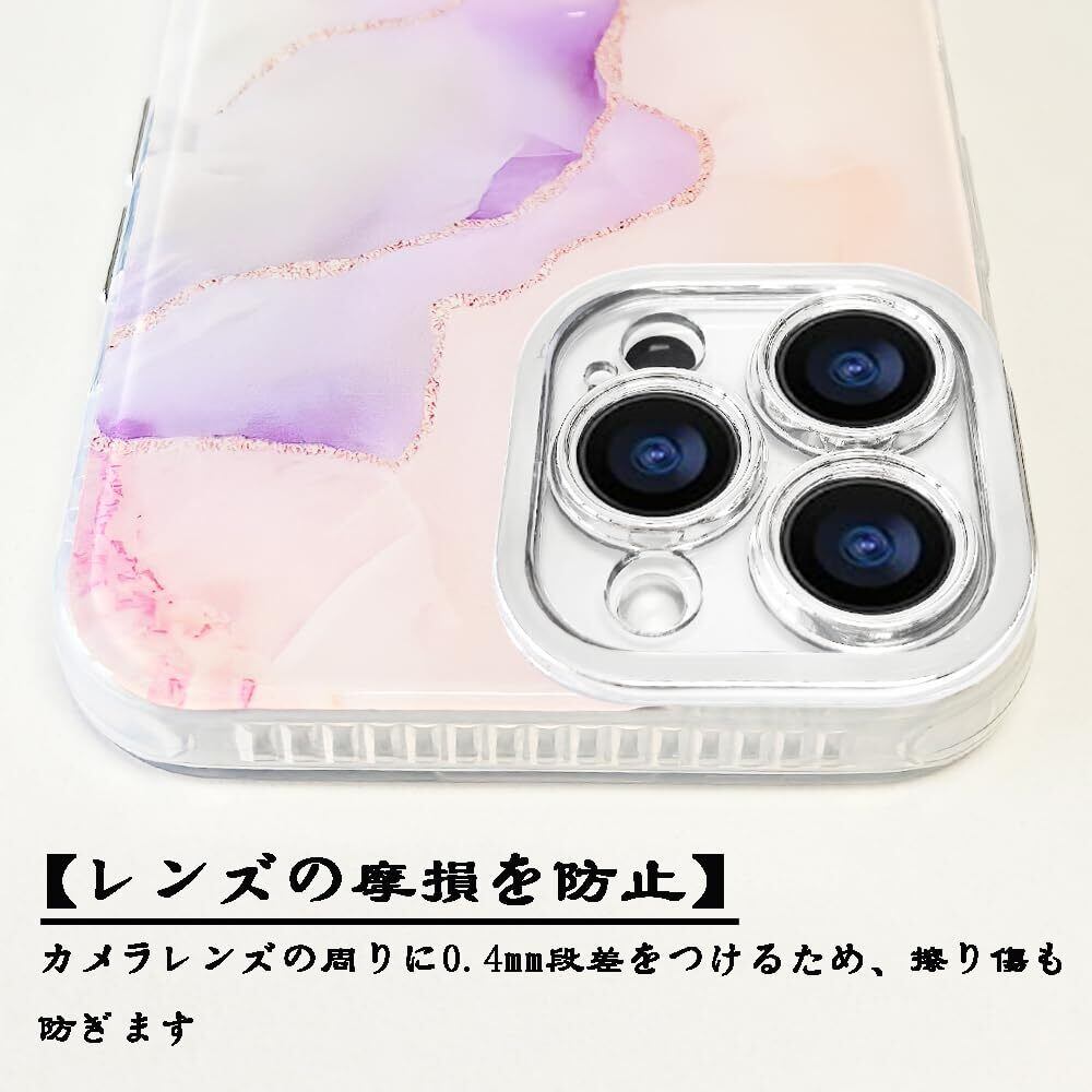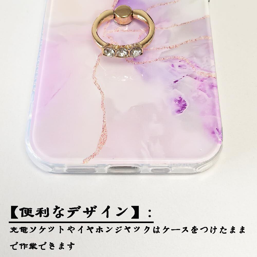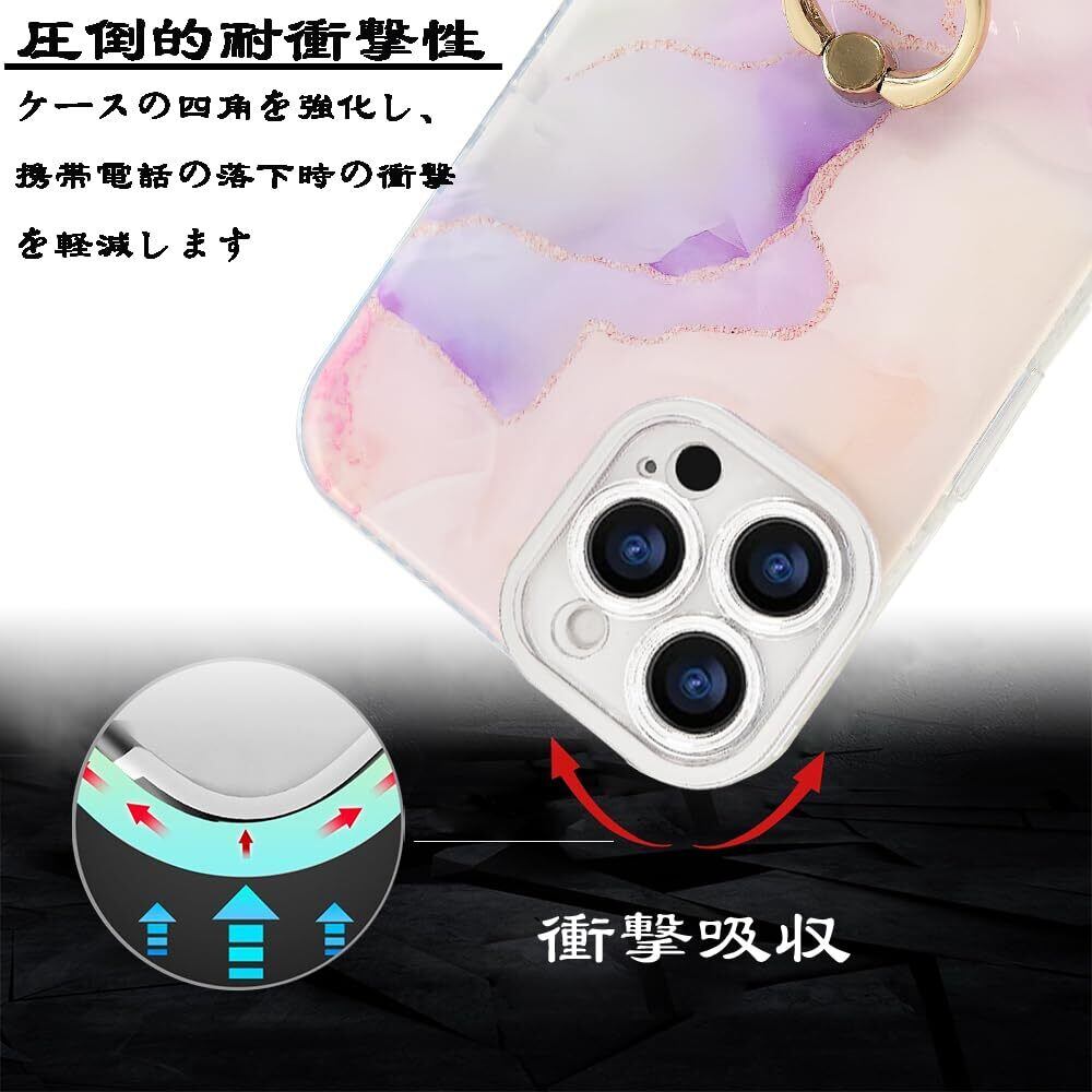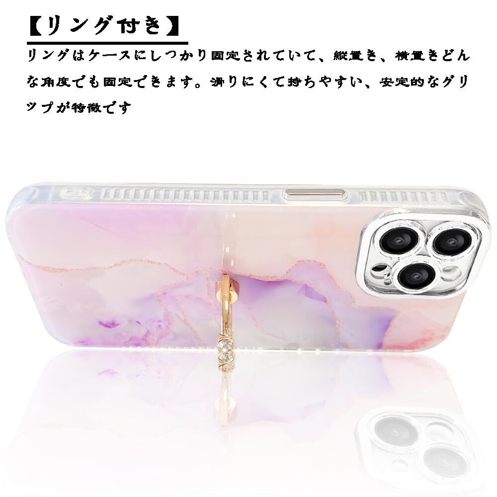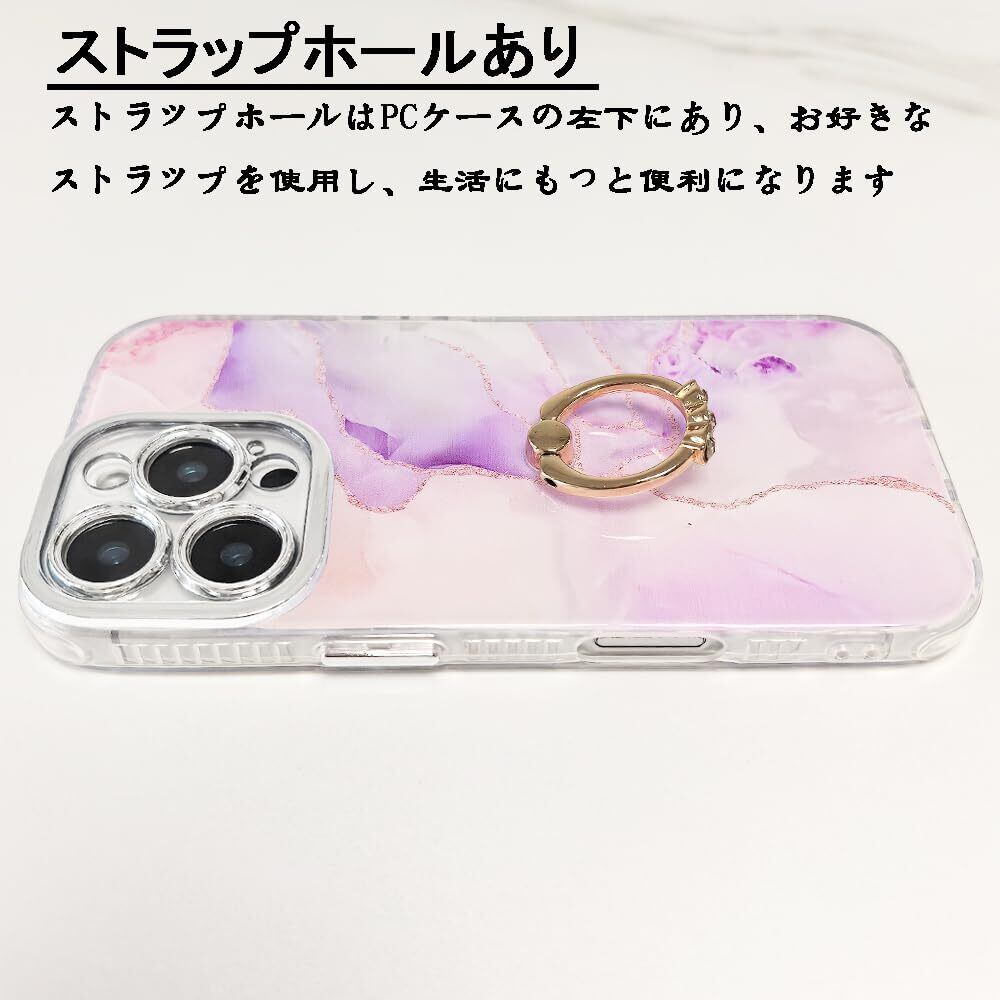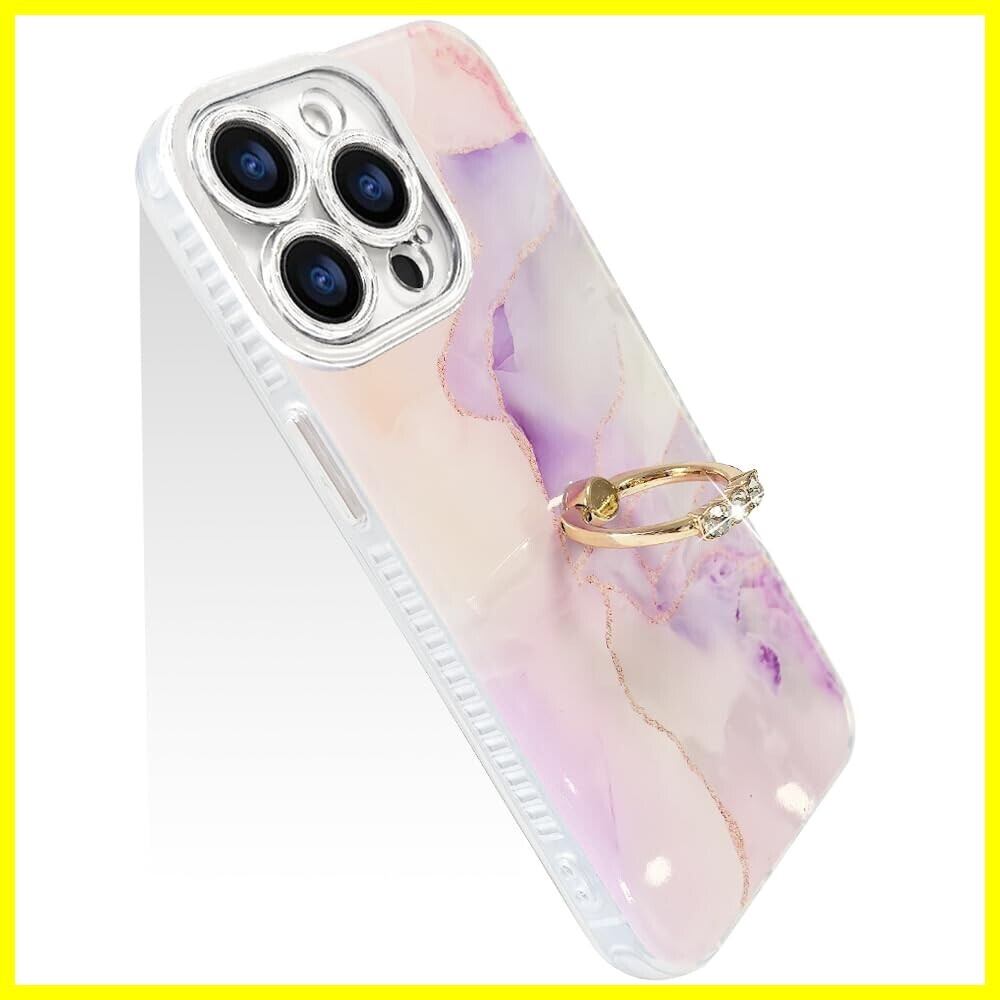 スマホケース 対応 iPhone 15 pro ケース リング付き 大理石柄 レンズメッキ加工 かわいい キャラクター ディズニー 美しい おしゃれ 女性 人気 保護カバー 薄型 軽量 アイフォン15プロ 携帯電話かばー (ピンク.パープル, iPhone15 Pro)