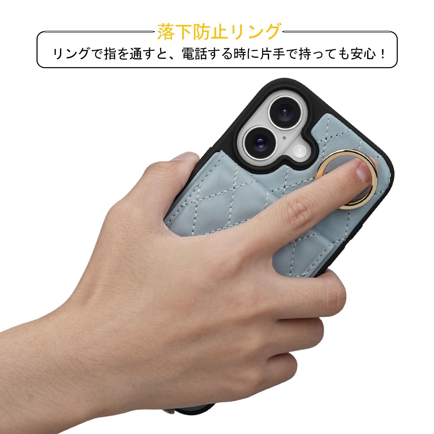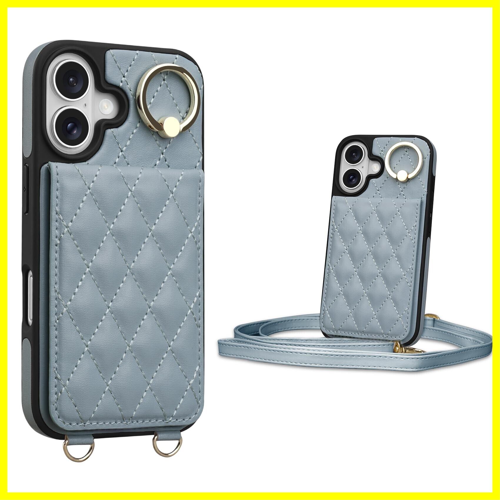 iPhone 16 対応 ケース 背面 手帳型 カードケース iPhone16 用 ショルダー ストラップ 背面ケース 手帳型ケース キルティングアイホン 16 用 スタンド 肩掛け カード収納 斜め掛け 首掛け PUレザー マグネット 可愛い チェック柄 格子柄 女性 菱形 おしゃれ 6.1inch ブルー