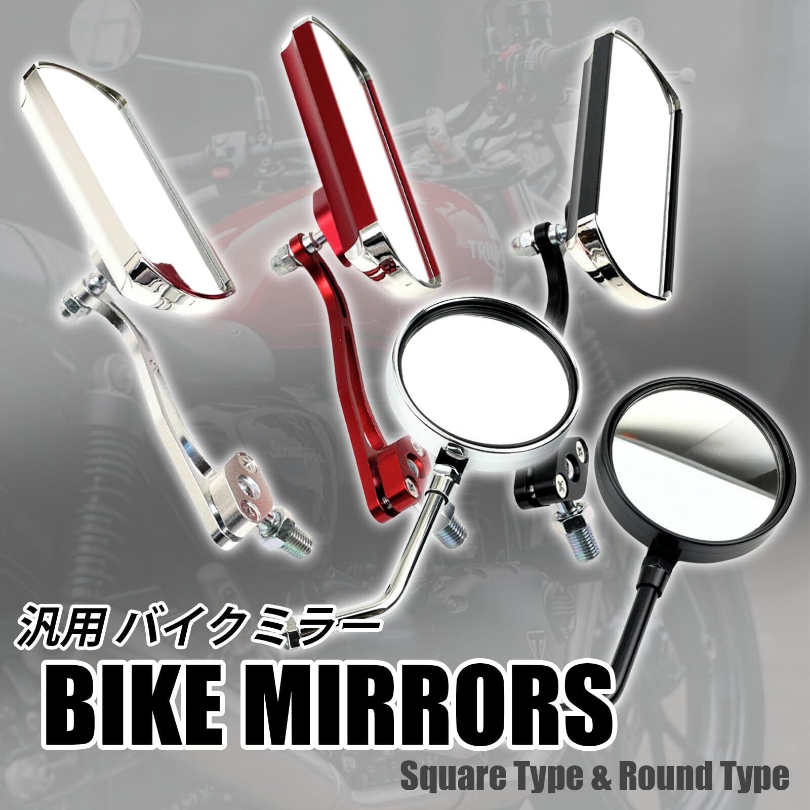 【簡単取り付け】M10からM8の変換アダプターが付属しているため、※円形タイプにはアダプターの付属はありません。さまざまなバイクに簡単に取り付け可能です。これにより、カスタマイズの自由度が高まり、個々のバイクに最適なミラーを装着できます。