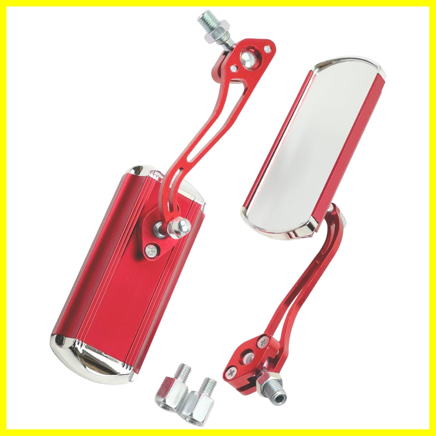 HTharros バイク ミラー 左右セット アルミ 正ネジ10mm アダプター8mm レッド 汎用 社外品 RDS