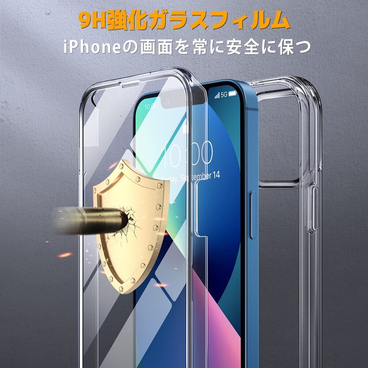 Miracase iPhone13 用 ケース スマホケース iphone13 用 カバー 9H 強化ガラス 2021 6.1インチ フルカバー 360°保護 ワイヤレス充電対応 クリア