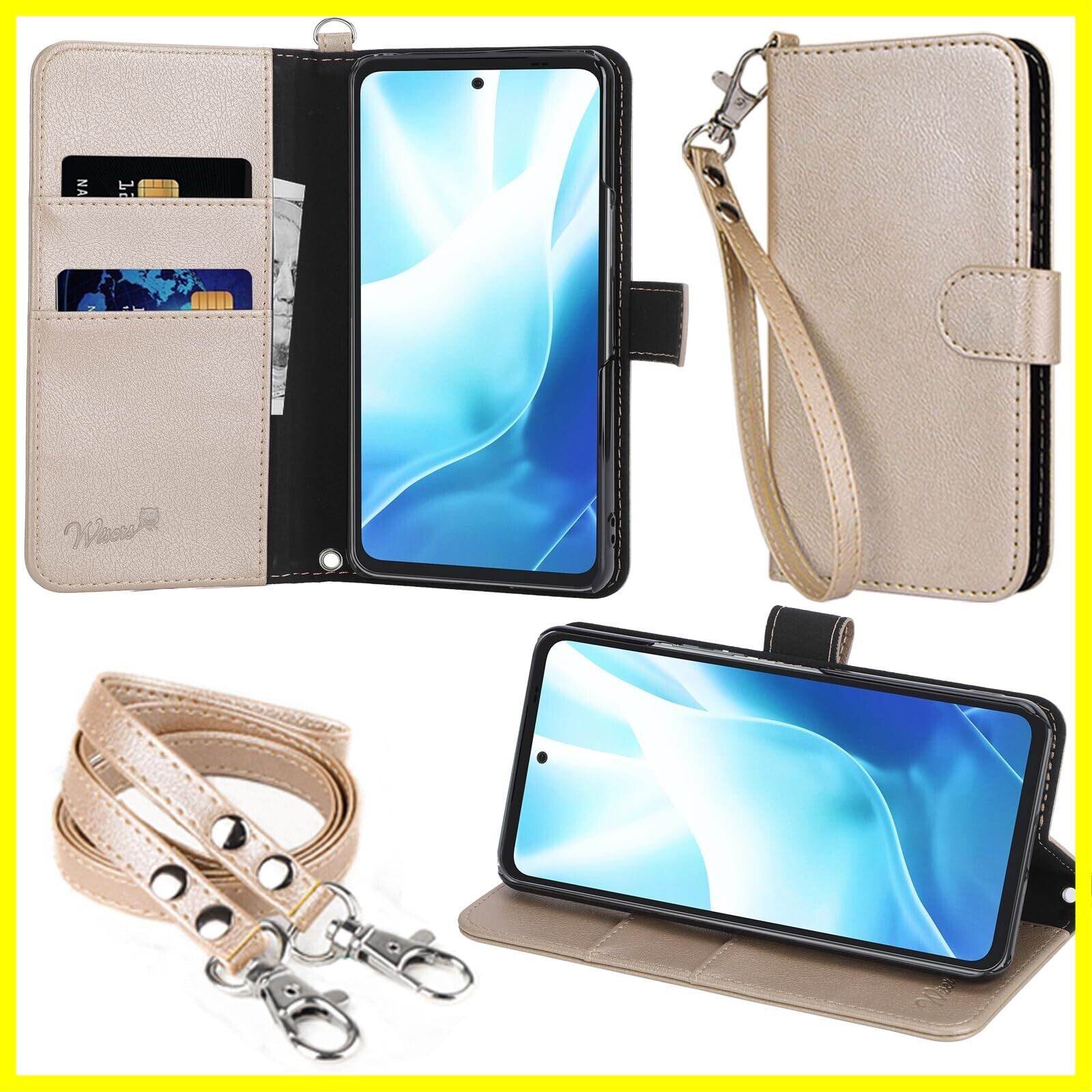 wisers arrows We2 Plus F-51E M06 ケース 手帳型 スマホケース 対応 (ゴールド) ストラップ 2種付き (ハンドストラップ/ネックストラップ) 2024年 新型