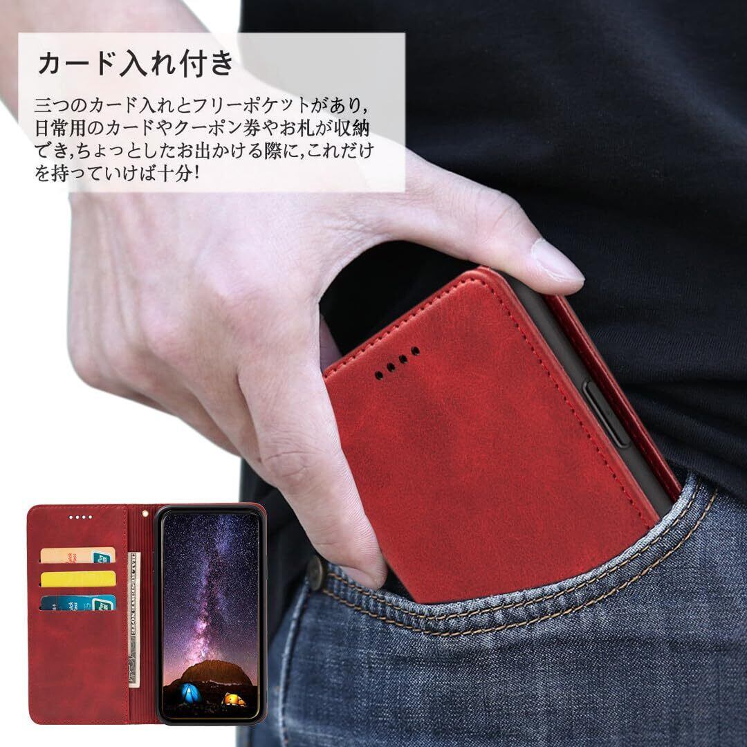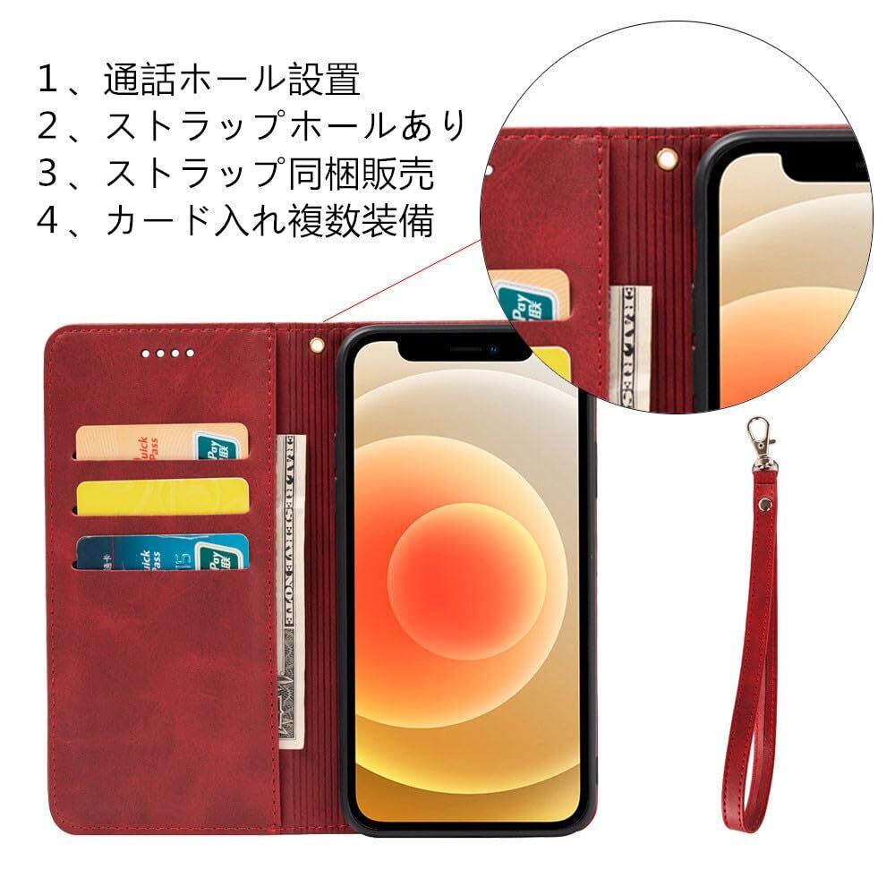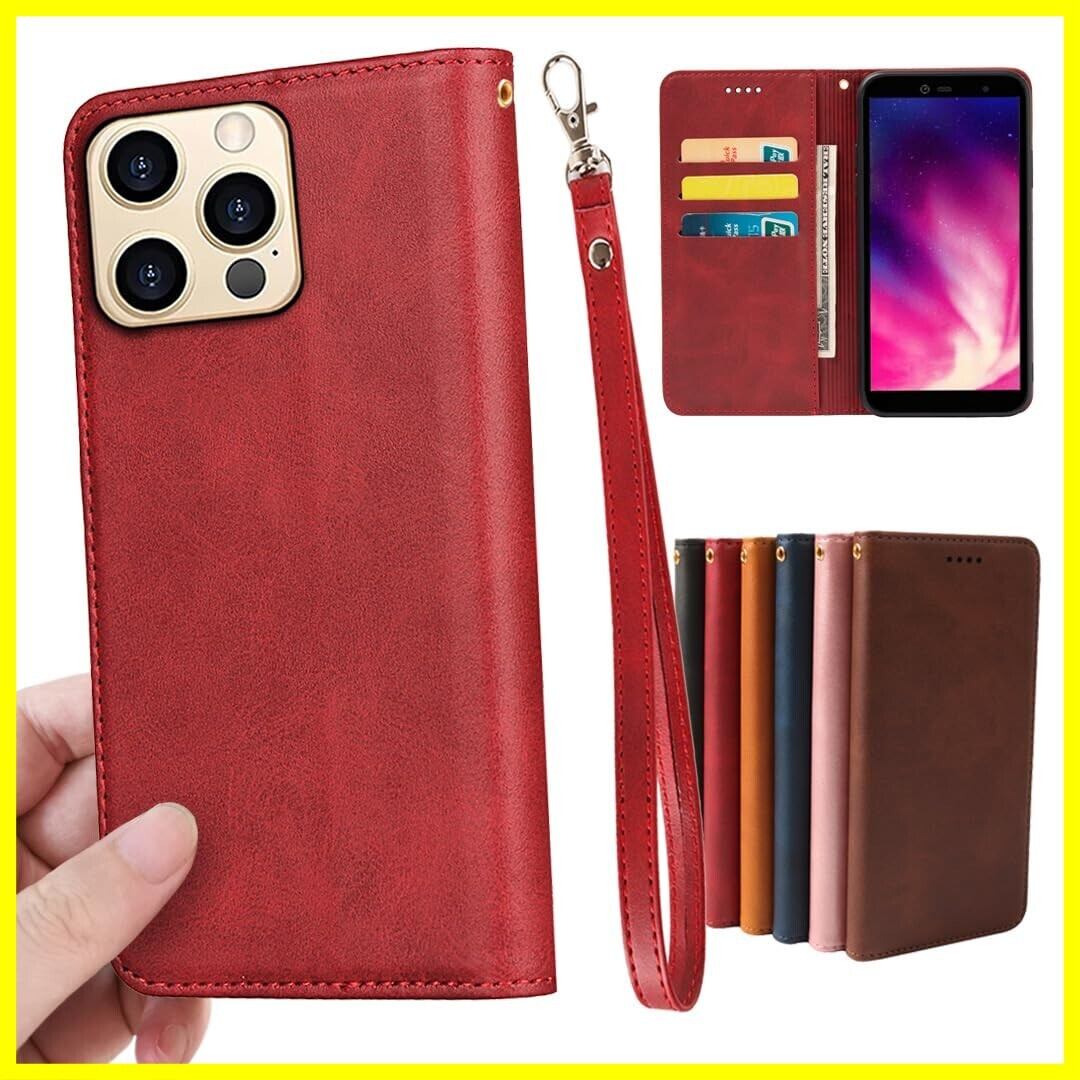 適用 iPhone 16 pro max ケース 手帳型 PUレザー ストラップ 同梱 カード収納 スタンド機能 耐衝撃 アイフォン16プロマックス スマホケース 手帳 いphone16promax case カバー 財布型 内蔵マグネット 弱磁 ストラップホール 携帯カバー レトロ レッド