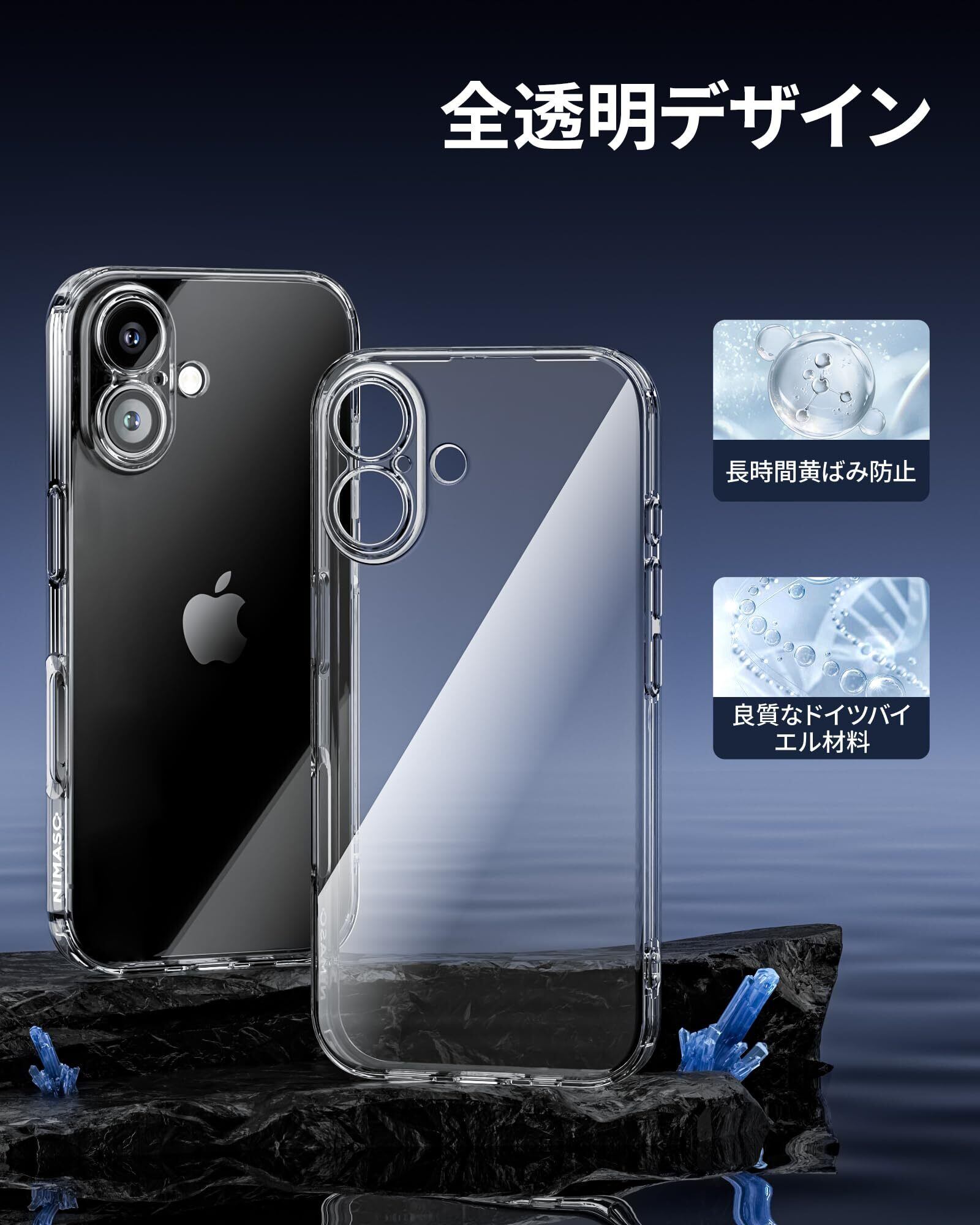NIMASO iPhone 16 用 ケース クリア ケース 透明 ソフト スマホケース TPU素材 薄型 カバー 米軍MIL規格 衝撃吸収 カメラ レンズ保護 黄ばみにくい いphone 16 ケース ワイヤレス充電対応(清水シリーズ)