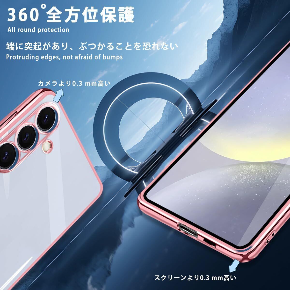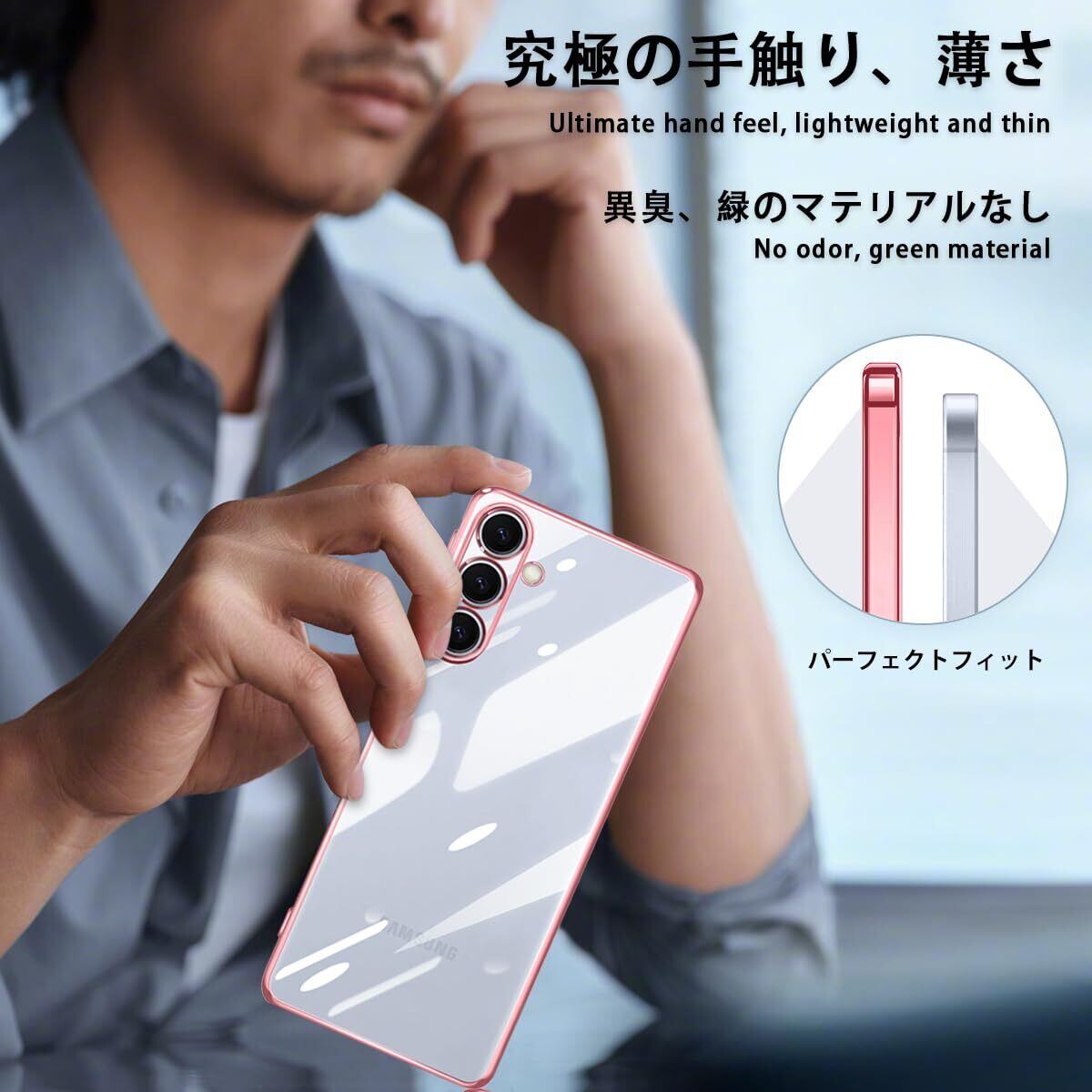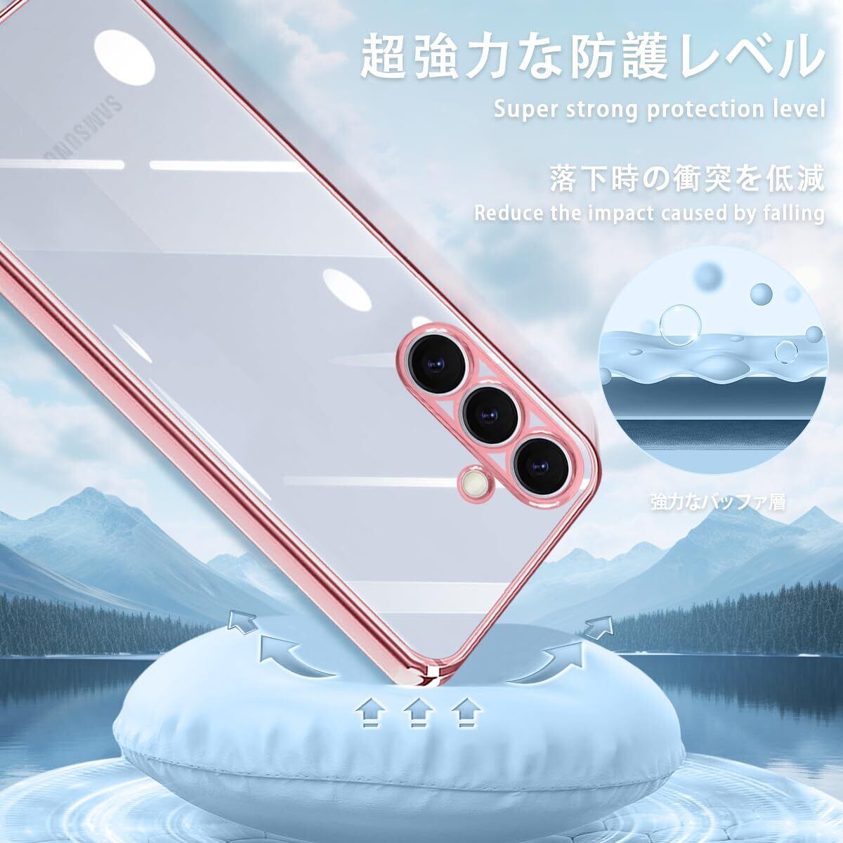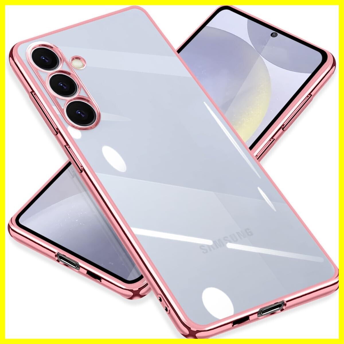 Galaxy S24 5G ケース クリア ギャラクシー スマホケース メッキ加工 耐衝撃 カバー 透明 TPU レンズ保護 ストラップホール付き 薄型 黄変防止 擦り傷防止 人気 (ローズゴールド)