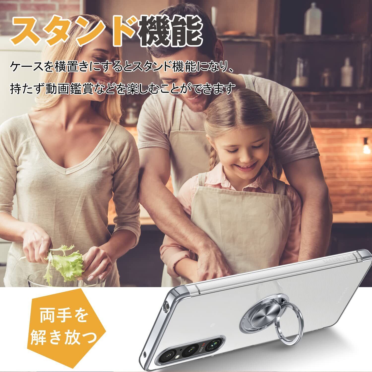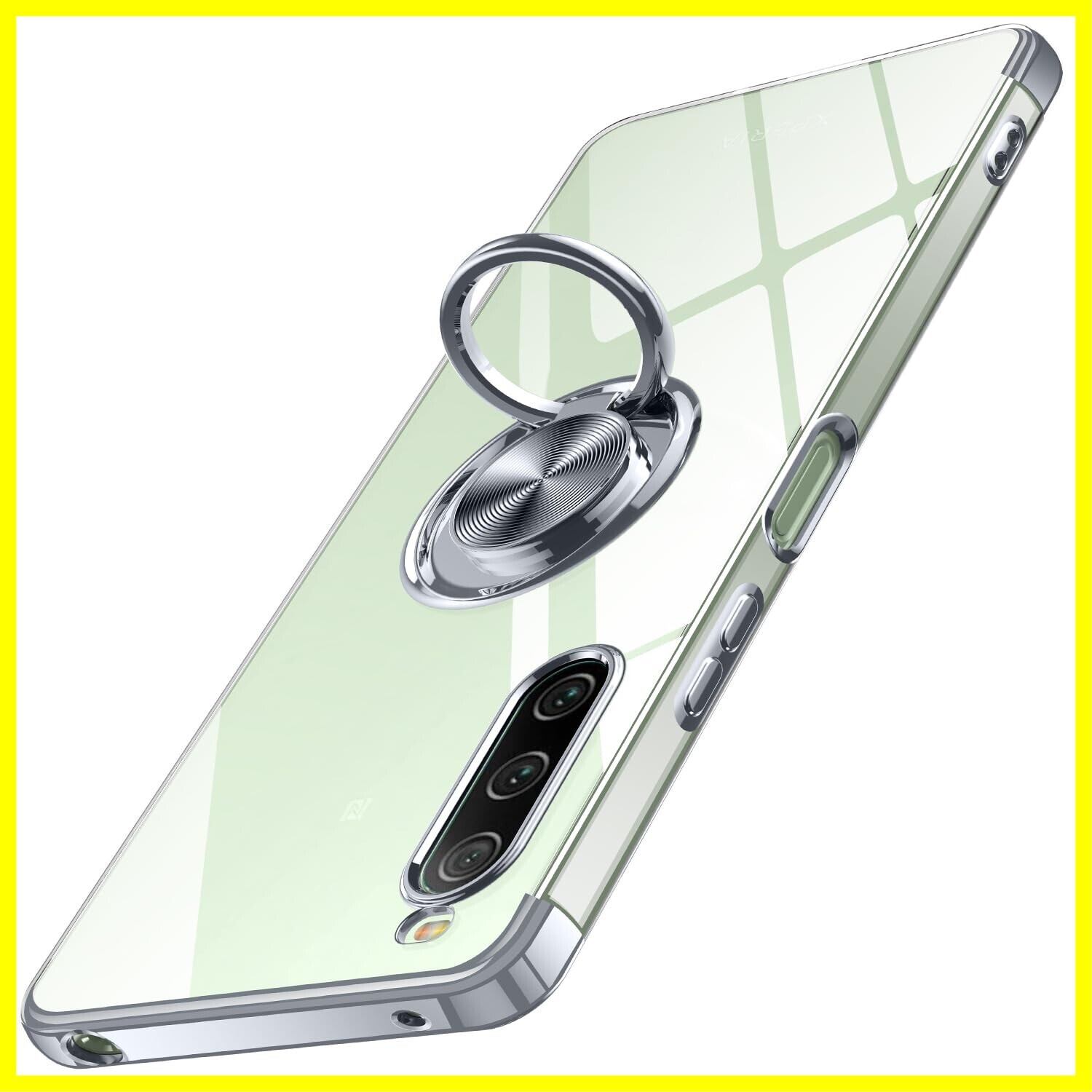 Xperia 10 V 用 ケース クリア リング付き エクスペリア 10 V/SO-52D / SOG11 カバー 透明 おしゃれ OURJOY スマホケース メッキ加工 ソフトケース 耐衝撃 軽量 薄型 ストラップホール付き スタンド機能 車載ホルダー対応 携帯ケース・シルバー
