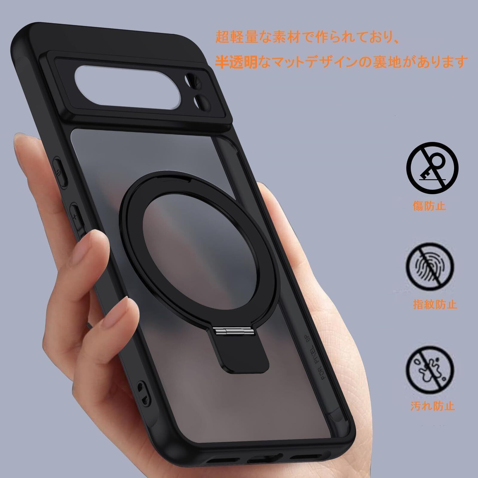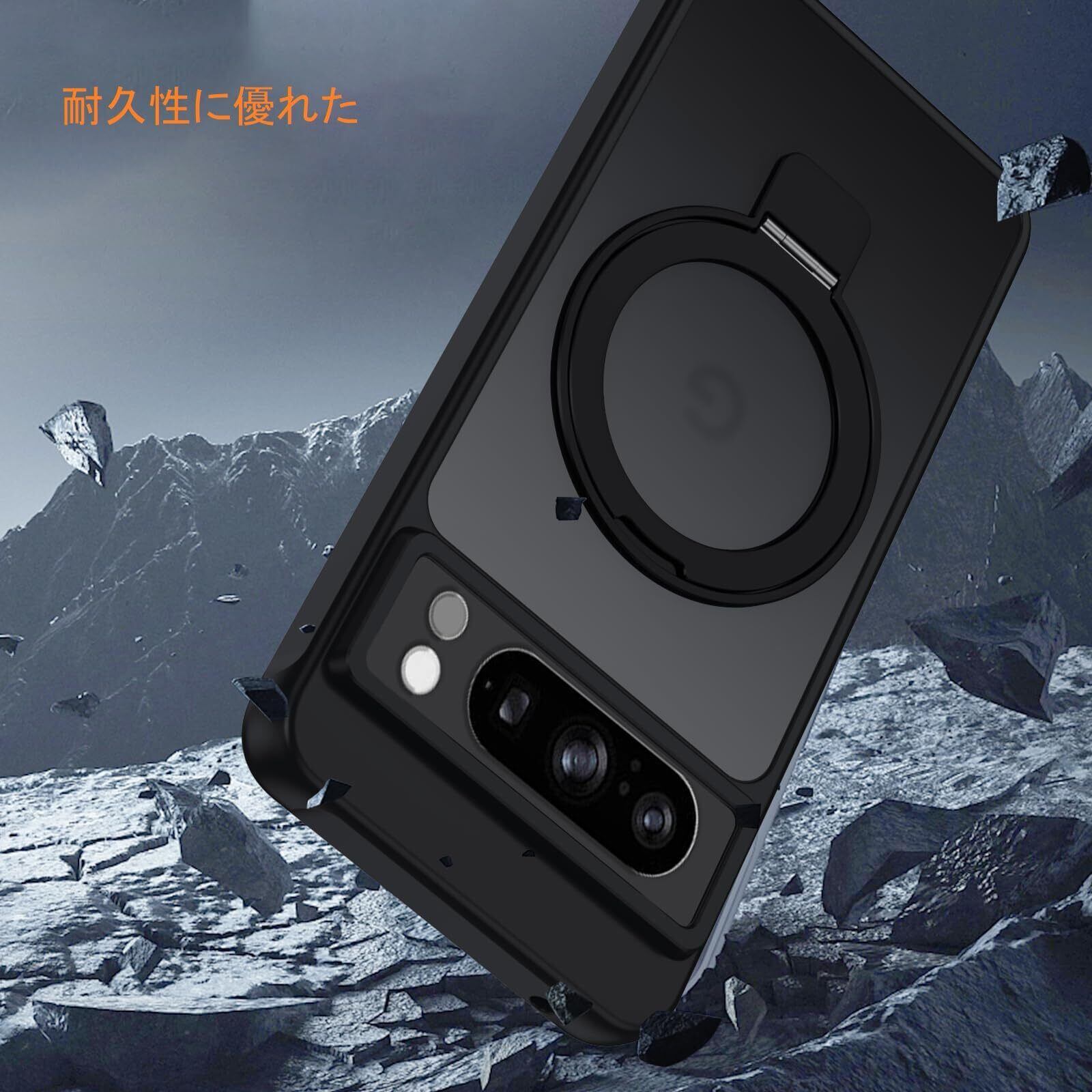 Google Pixel 6a 用 ケース スタンド機能 一体型Magsafeリングスタンド ホルダーグーグル ピクセル6A カバー スタンド機能 縦横両対応 HILEGENER スマホケース 耐衝撃 半透明 マット感 車載ホルダー対応 ワイヤレス充電 ストラップホール付き Google Pixel 6a-ブラック