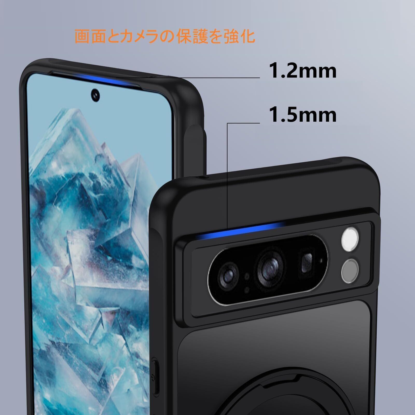 【米軍MIL規格の落下防止・耐衝撃性保護】スマホの画面やカメラレンズの落下による損傷を保護するために、レンズやエッジよりも少し高いデザインを採用し、こんなの細部のデザインは安心感たっぷりのなっています。スマホをしっかり保護します。更にケース四隅には、高耐震クッションを搭載しており、Google Pixel 6aを落下などの衝撃からしっかりと守ります。