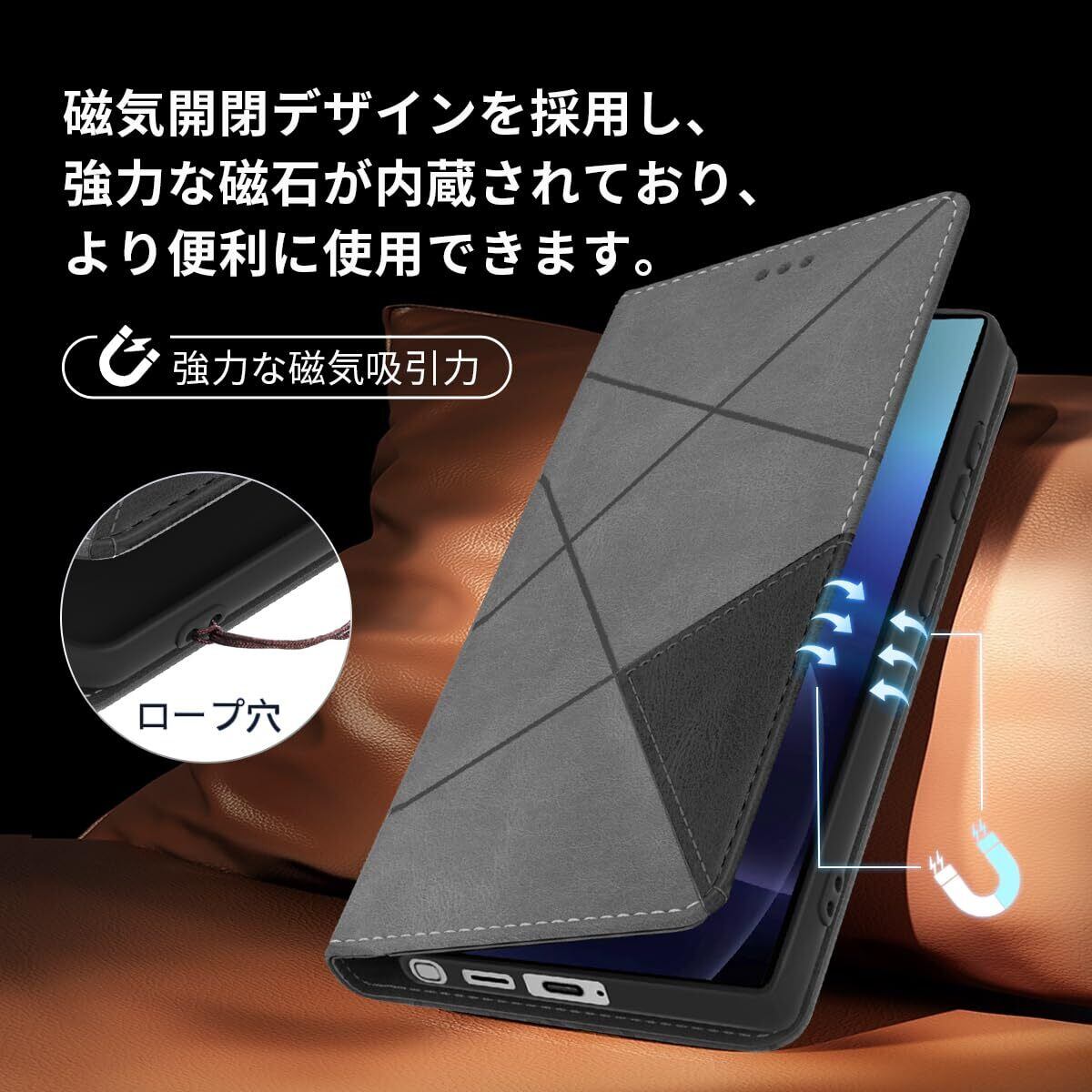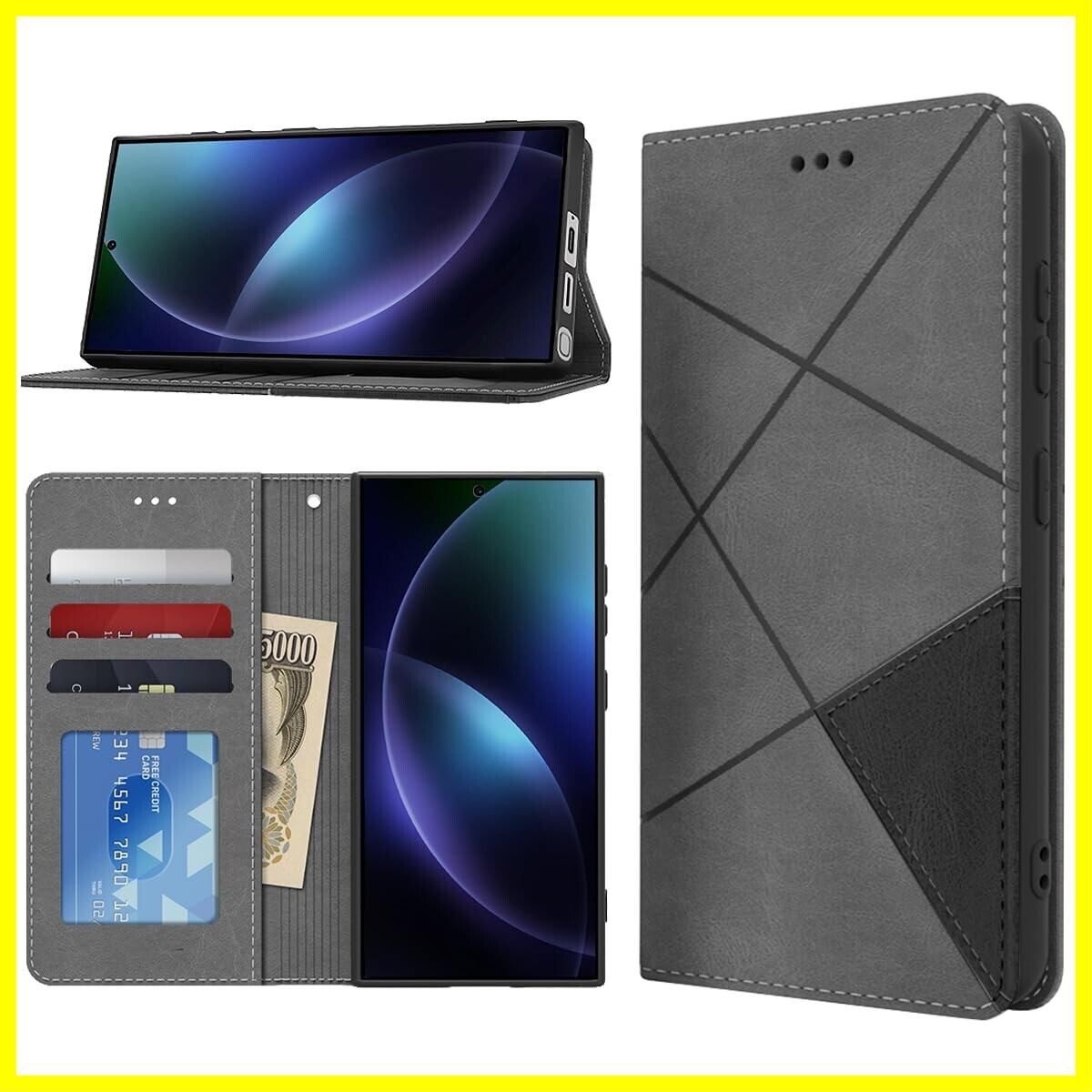 Galaxy S24 Ultra 手帳型 ケース 耐衝撃 高级PUレザー ギャラクシー S24Ultra スマホケース 財布型 横置きスタンド機能付 SM-S928U SC-52E SCG26 カバー カード収納 全面保護 ラップホール付き のあるソフトタッチ マグネット内蔵 擦り傷防止 ファッション 耐摩擦 シンプル気質 (グレー)