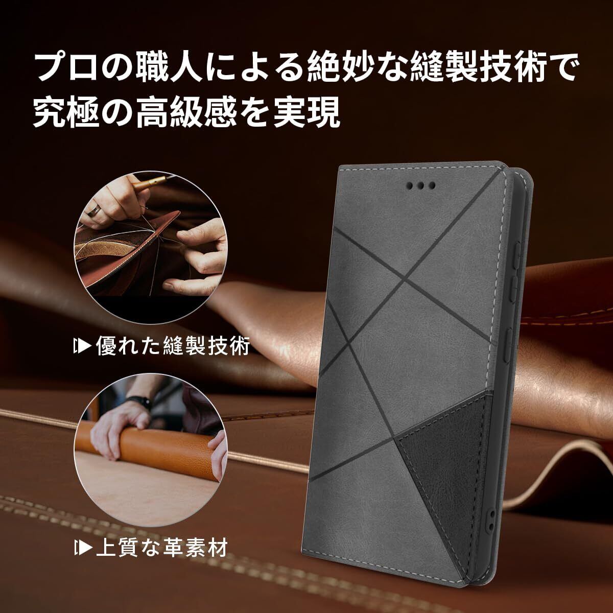 【プレミアム素材】保護ケースの外側には高品質なPUレザーを使用しています。肌に優しい上質なレザーと極めて精緻な縫製技術、芸術品のような精緻さと高級感、をもたらしますそして肌のような手触り感、あなたはこの感触を気に入るはずです。インナーケースは弾力性のあるソフトTPU素材を採用しており、柔らかく、なじみやすく、傷がつきにくい。柔らかいTPUカバーは取り付け・取り外しが簡単で、スマホ本体への損傷の心配ありません。