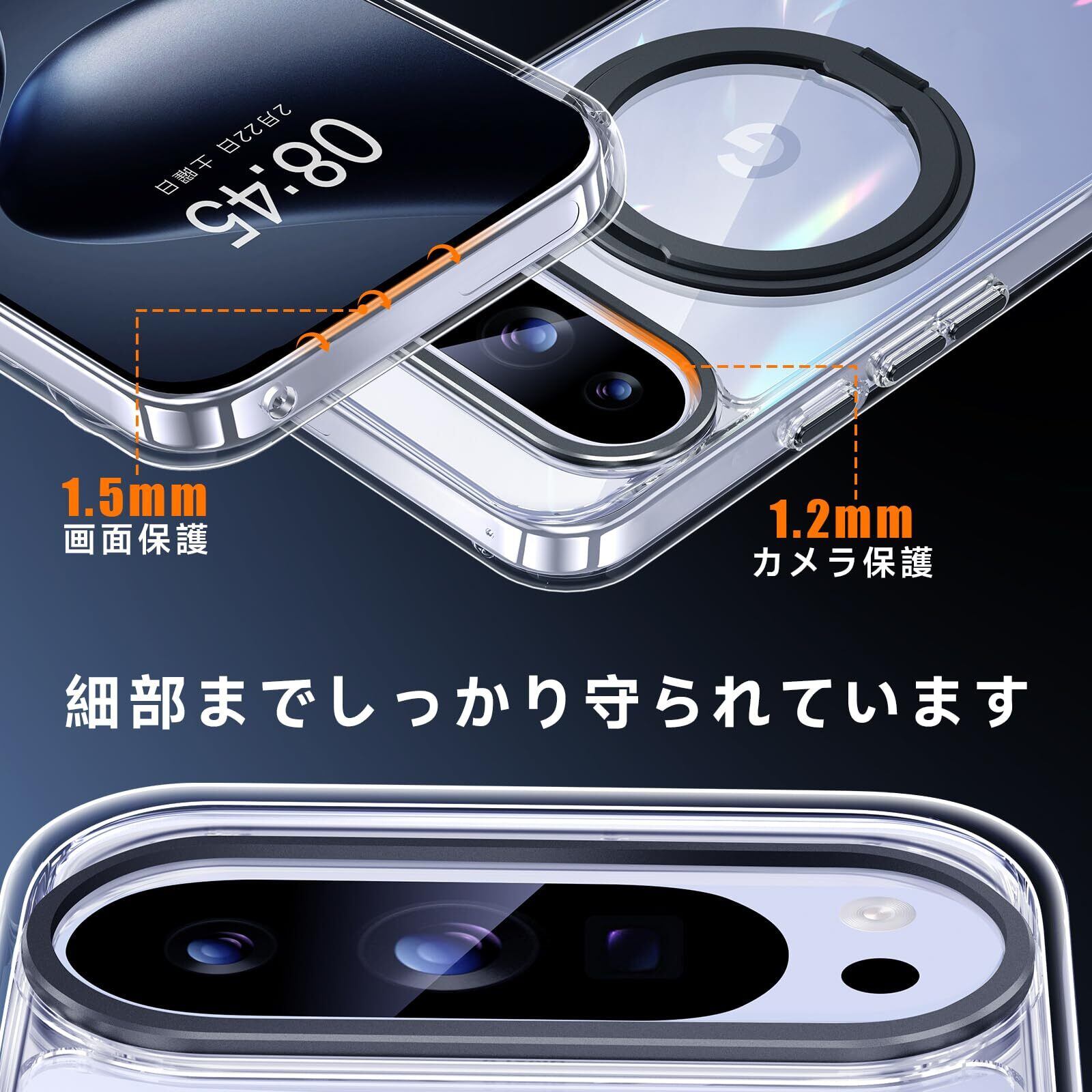 【米軍MIL規格準拠・高耐衝撃性能】米国国防総省の耐衝撃試験「MIL-STD-810G」に準拠し、耐衝撃性能が従来比20倍アップ!スマホの落下時に特に衝撃を受けやすい四隅には、衝撃を分散するクッション構造を採用。また、ケースの側面には柔軟性の高いTPU素材を使用し、耐衝撃性を強化。Google Pixel 9 / 9 Proをしっかりと守ります。