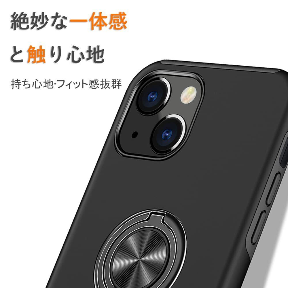 アイフォン14 ケース リング付き 耐衝撃 TPU 二重構造 iPhone 14 用 バンカー リング カバー Uovon スマホケース リングつき スタンド機能 車載ホルダー対応 擦り傷防止 落下防止 おしゃれ · ブラック