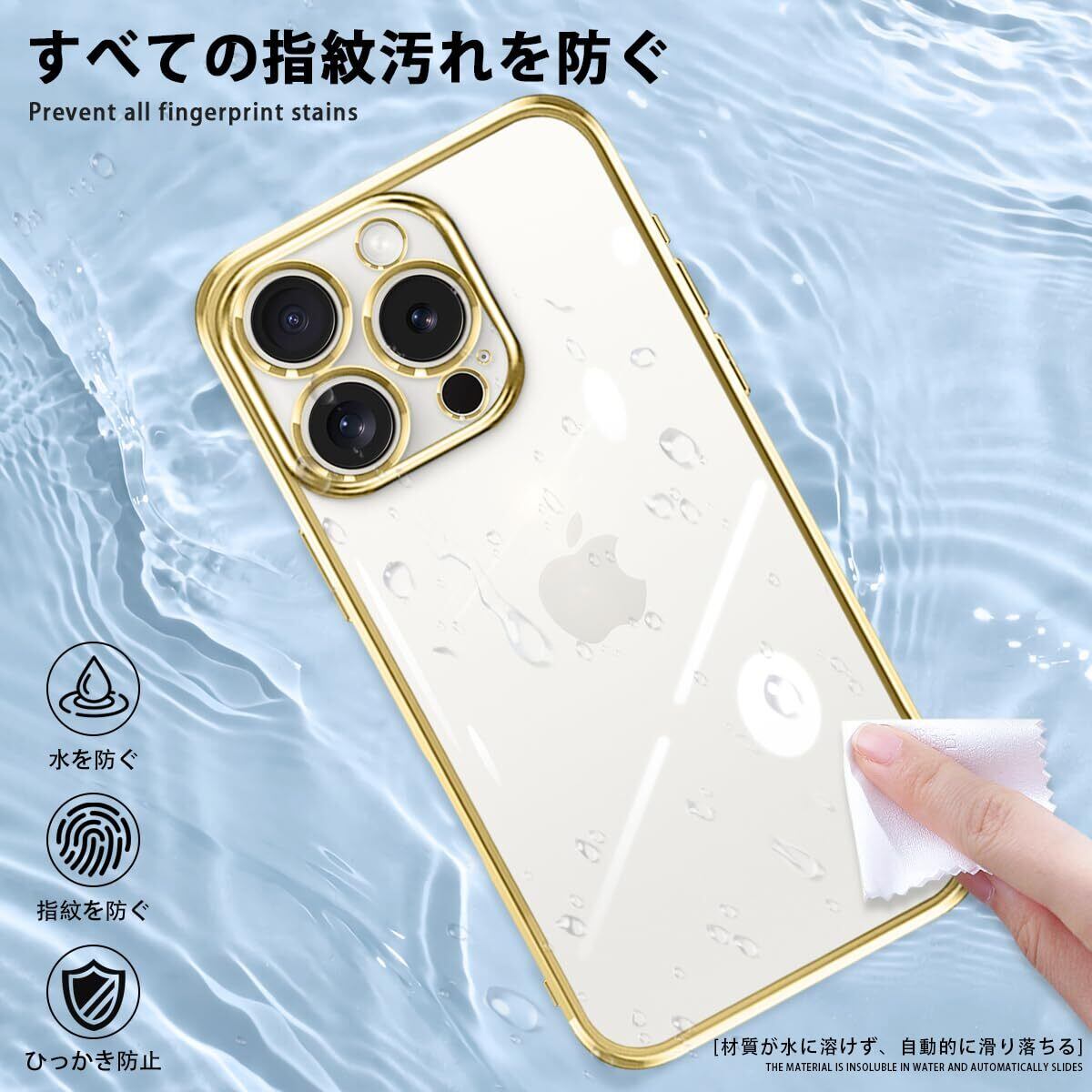 ケース 用の iPhone16 ProMax アイフォン16ProMax スマホケース クリア メッキ加工 耐衝撃 カバー 透明 TPU レンズ保護 ストラップホール付き 薄型 黄変防止 擦り傷防止 人気 (ゴールド)