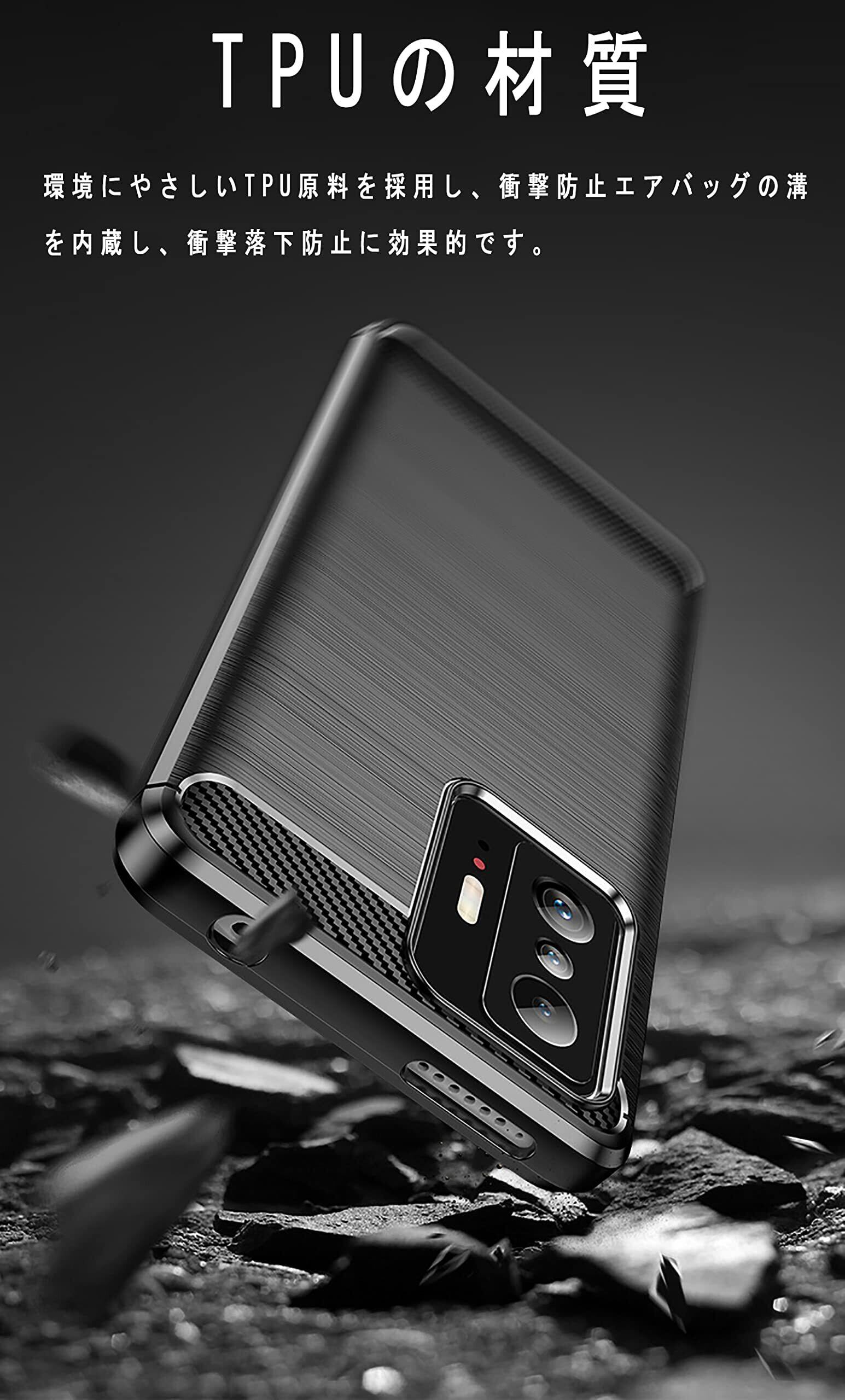 【高品質素材】 耐久力に優れ、滑りにくく、柔軟性がある特殊上質な炭素繊維素材と変形しにくい性質と衝撃吸収性の高いTPU素材を組み合わせたケースです、落下時の衝撃を効率よく吸収する可能です。