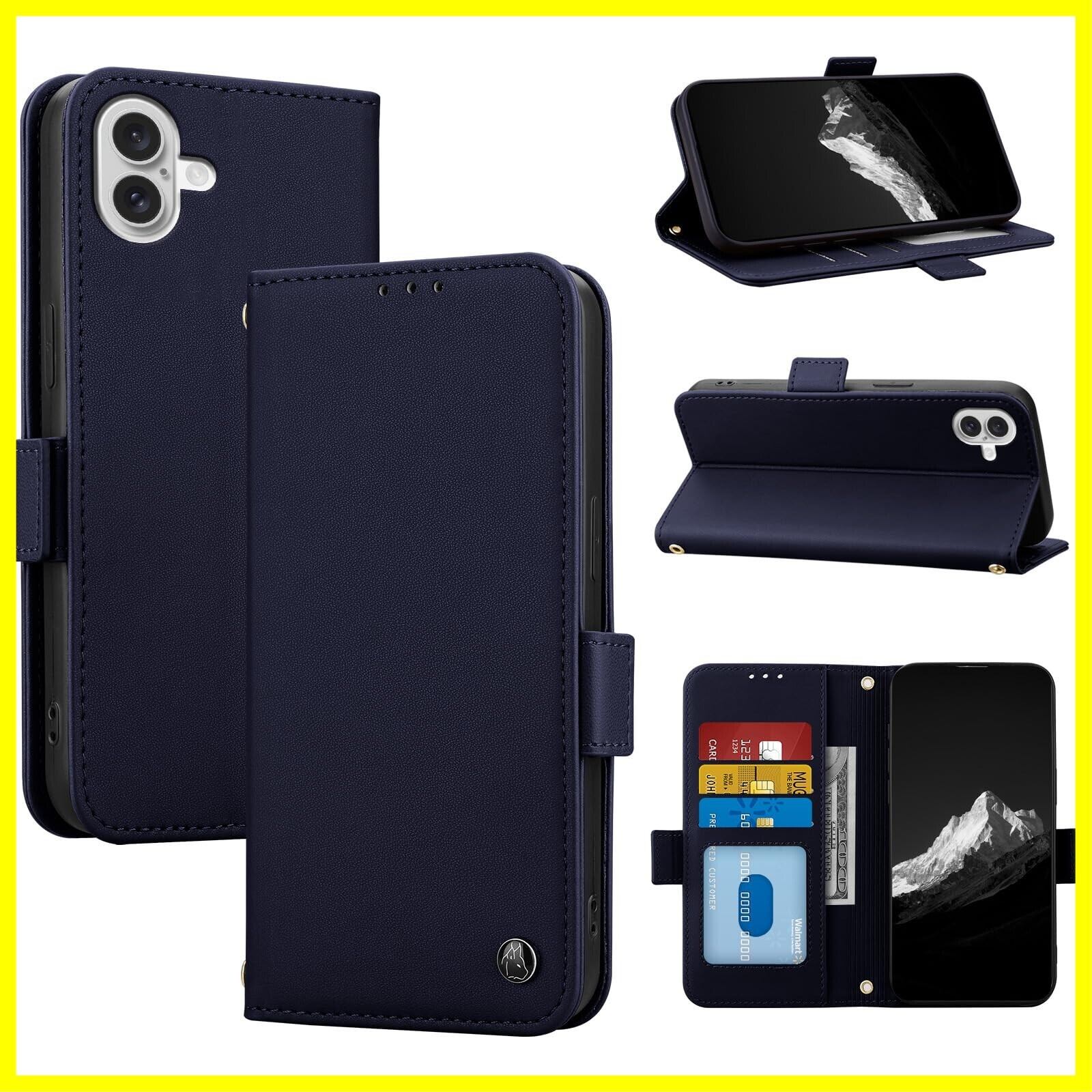 iPhone 16 ケース 手帳型 高級レザー 財布型 アイホン16用 携帯ケース カード収納 耐衝撃 スマホケース iphone16 カードケース ポケット付き マグネット式 スタンド機能[青色]