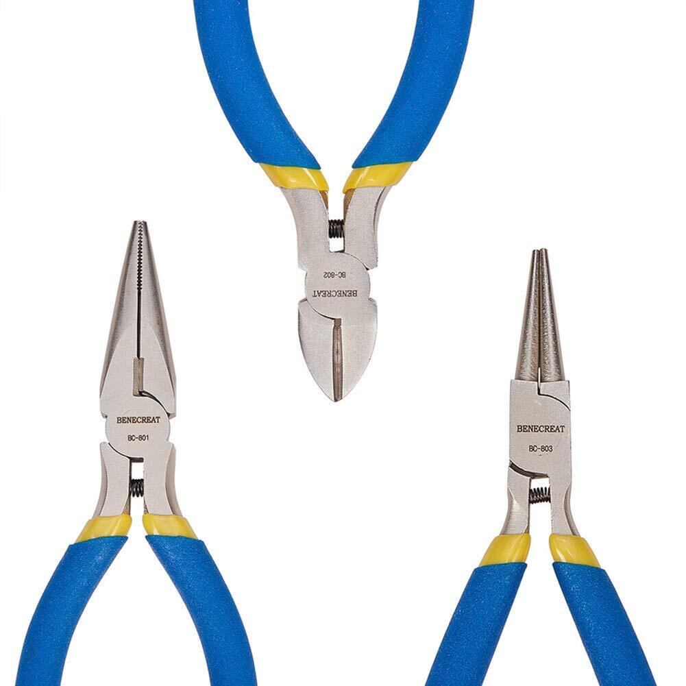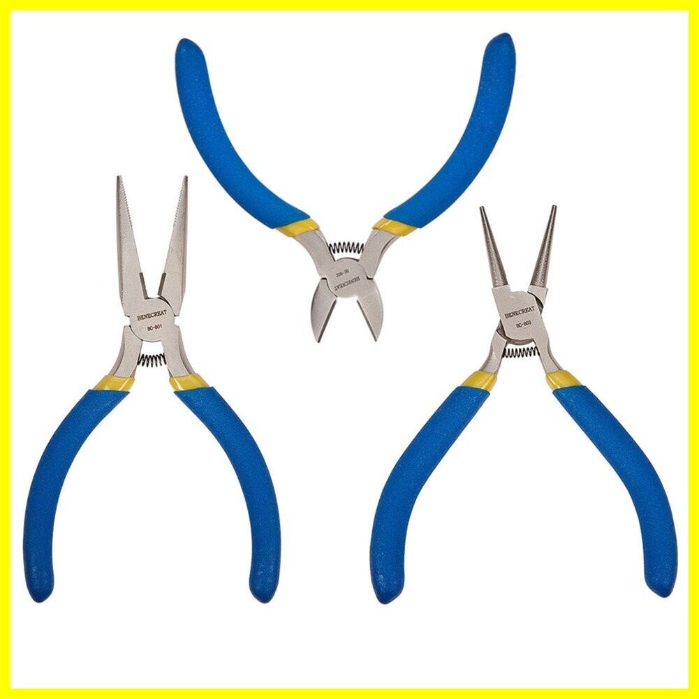 BENECREAT 3点手芸ペンチセット アクセサリー製作 ビーズ工具 DIY手作りへ ステンレス製 ブルー