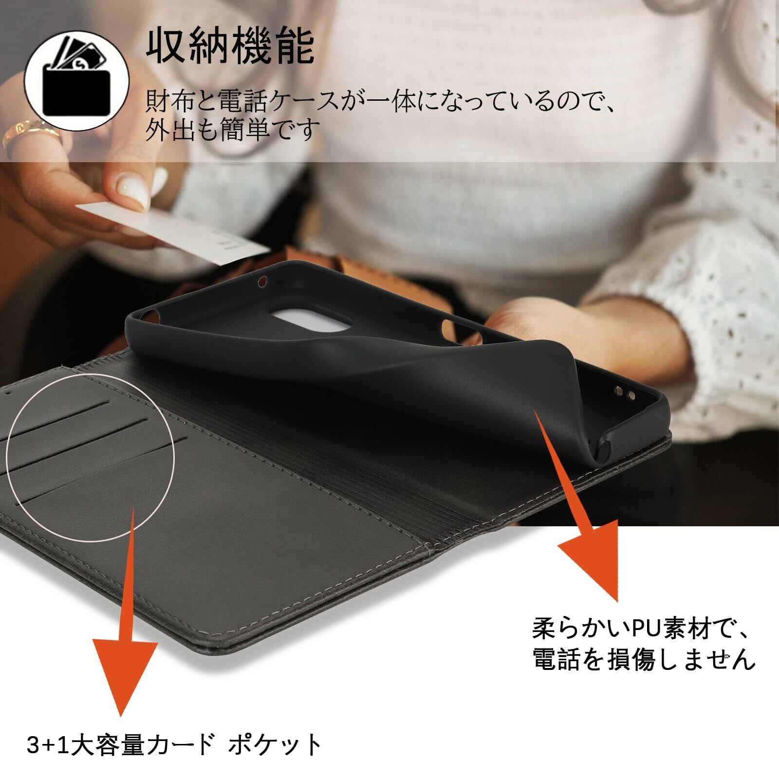 【高級皮革】高品質のPUと柔軟なTPUカバーと組み合わせ、軽量で耐衝撃性に優れ、変形しにくくまた、取り外しが簡単で、スマホ本体への損傷の心配ありません。