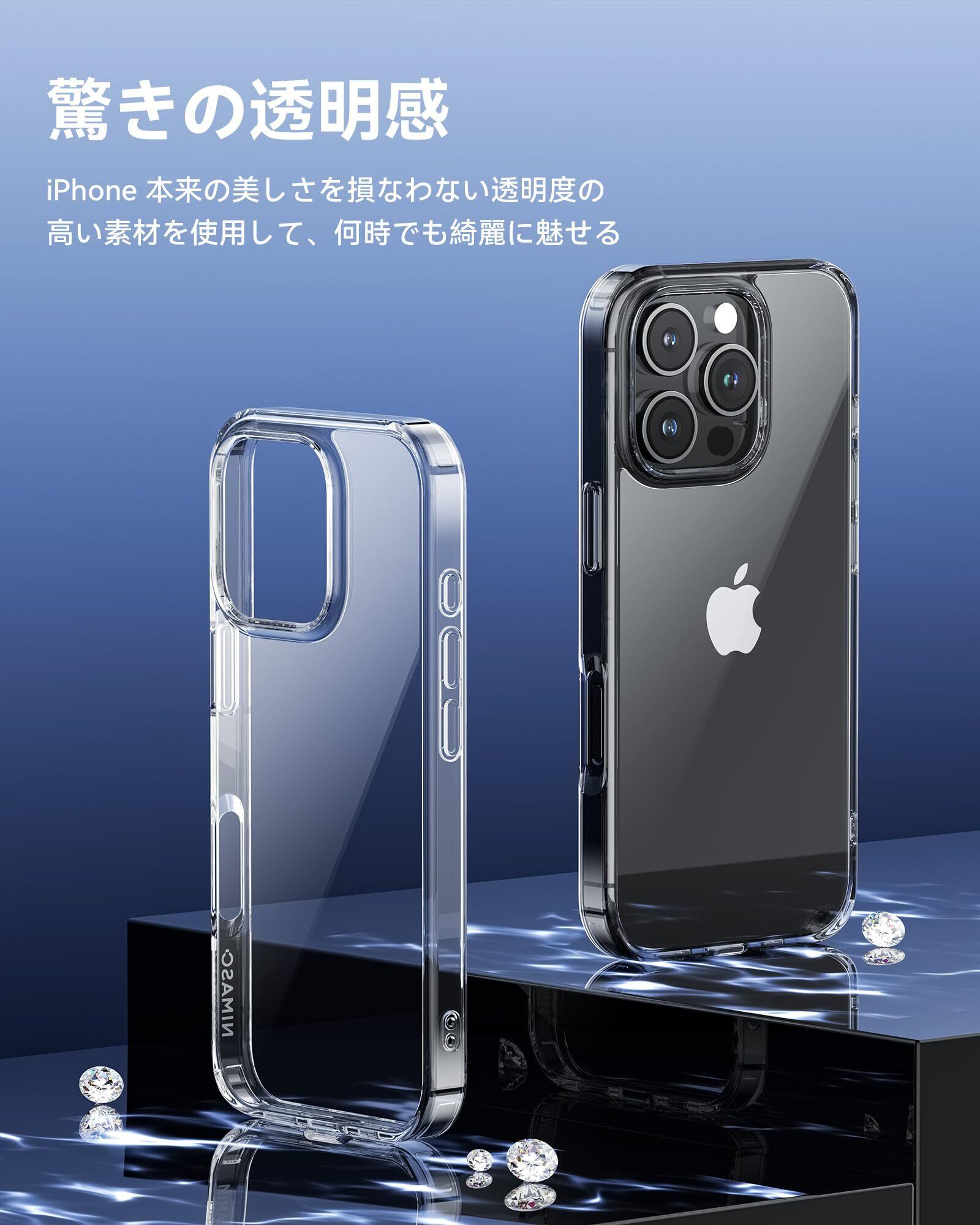 NIMASO iPhone 16 Pro Max 用 ケース クリア 黄変防止 耐衝撃 米軍MIL規格 SGS認証 PC背面 いPhone 16 Pro Max 傷つけ防止 超薄型 軽量 ワイヤレス充電対応 ストラップホール付き アイフォン 16 プロ マックス対応(6.9インチ)スマホケース(氷星シリーズ)クリア NSC24G1470