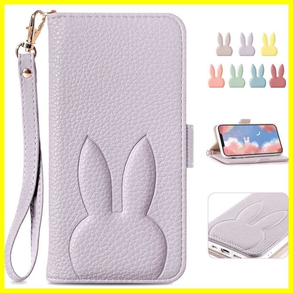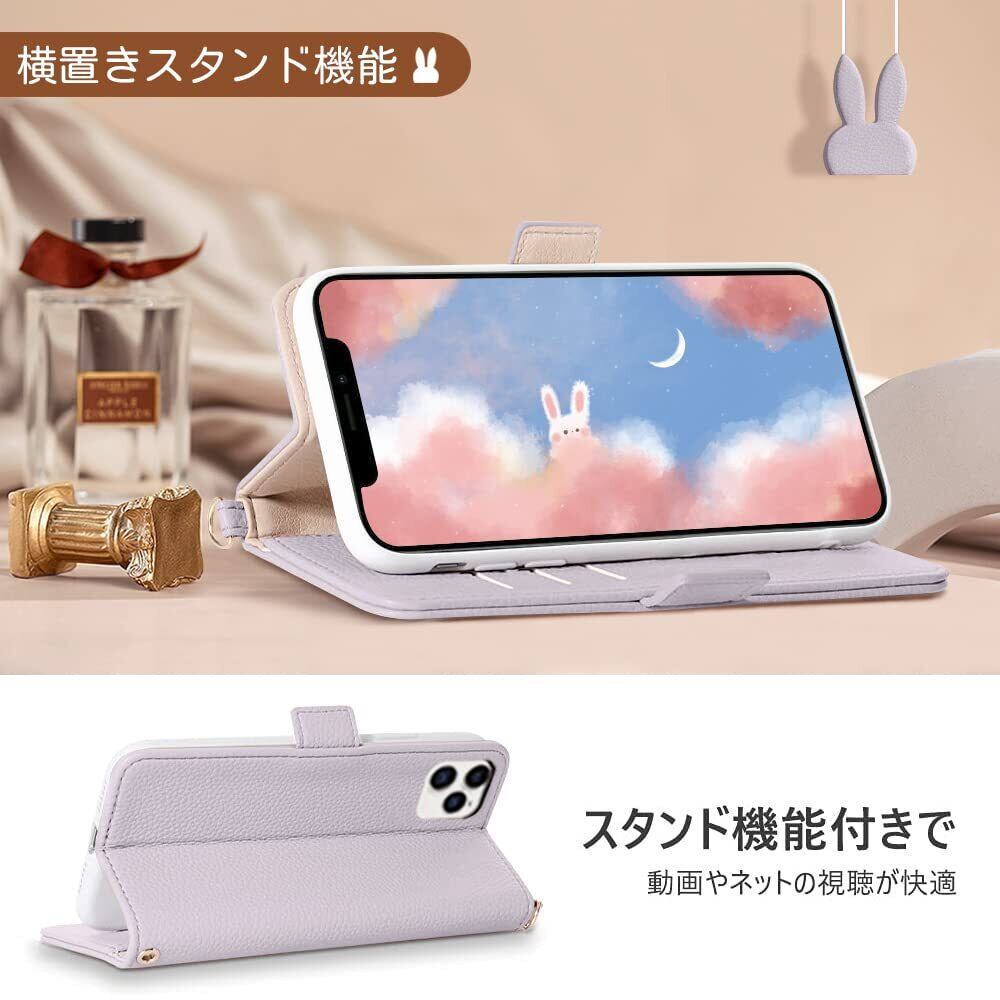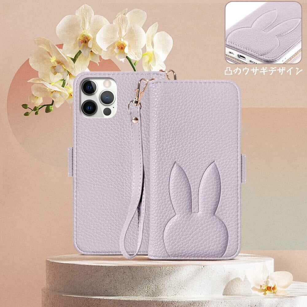 iPhone 12ケース iPhone 12 Pro ケース 手帳型 人気 可愛い スマホケース アイフォン12 お洒落 PUレザー 肌触り良い アイホン 12 携帯カバー スタンド機能 あいふぉん12 Pro 財布 ケース 動物 うさぎ 着脱しやすい iPhone 12 ケース手帳型 手作 高質感 衝撃吸収 贈り物(iPhone12/12 Pro 6.1inch対応)パープル