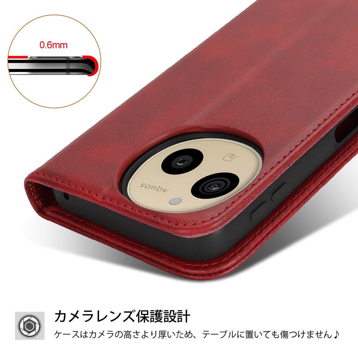 AQUOS Sense9 ケース 手帳型 Sense 9 ケース センス9 ケース AQUOSSense9 SH-M29 全対応 SHM29 SoftBank A405SH 楽天モバイル docomo SH-53E au SHG14 SIMフリー アクオス SH53E シャープ 手帳 カバー 適用 case iCoverCase マグネット カードケース スマホケース レトロ レッド