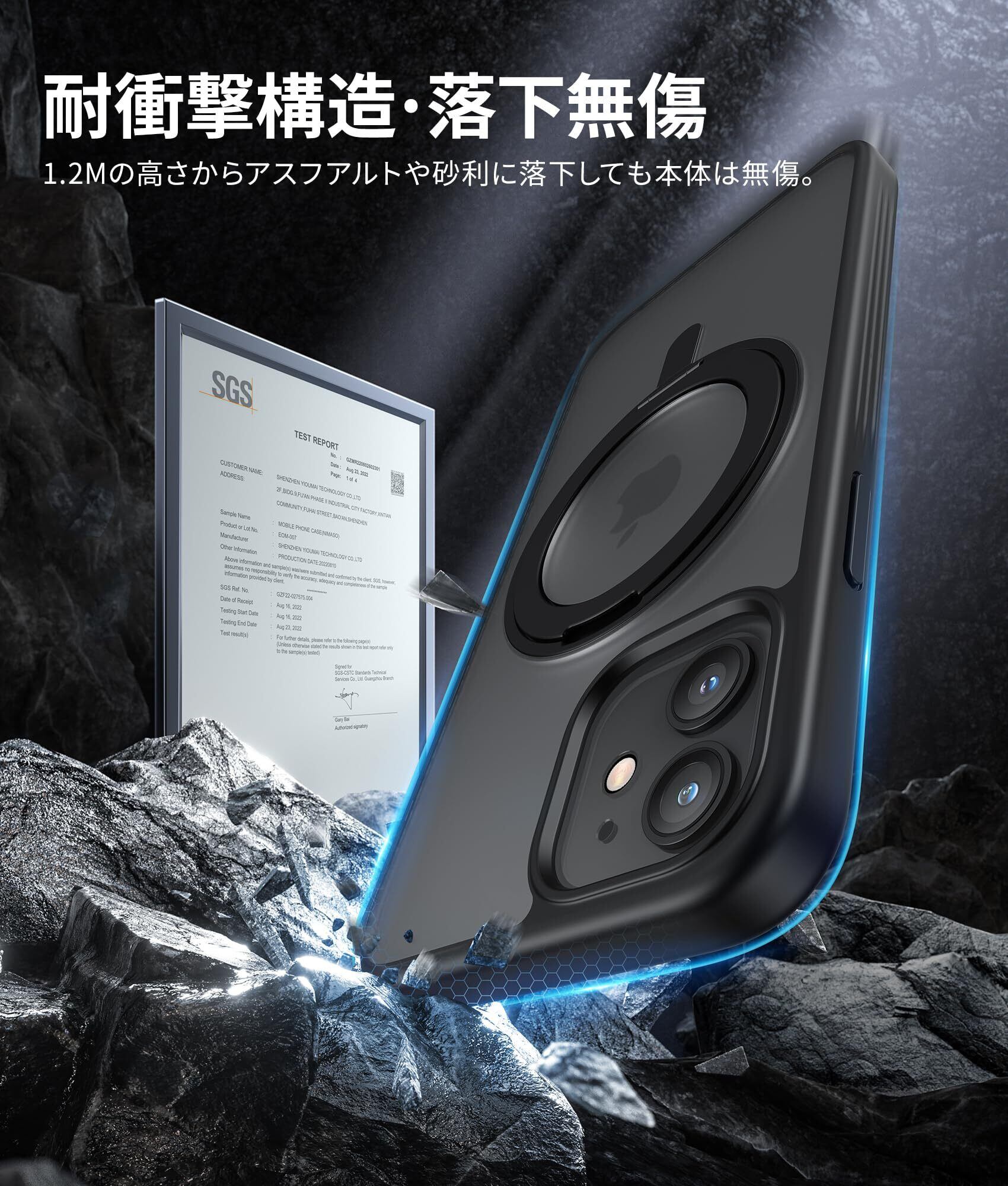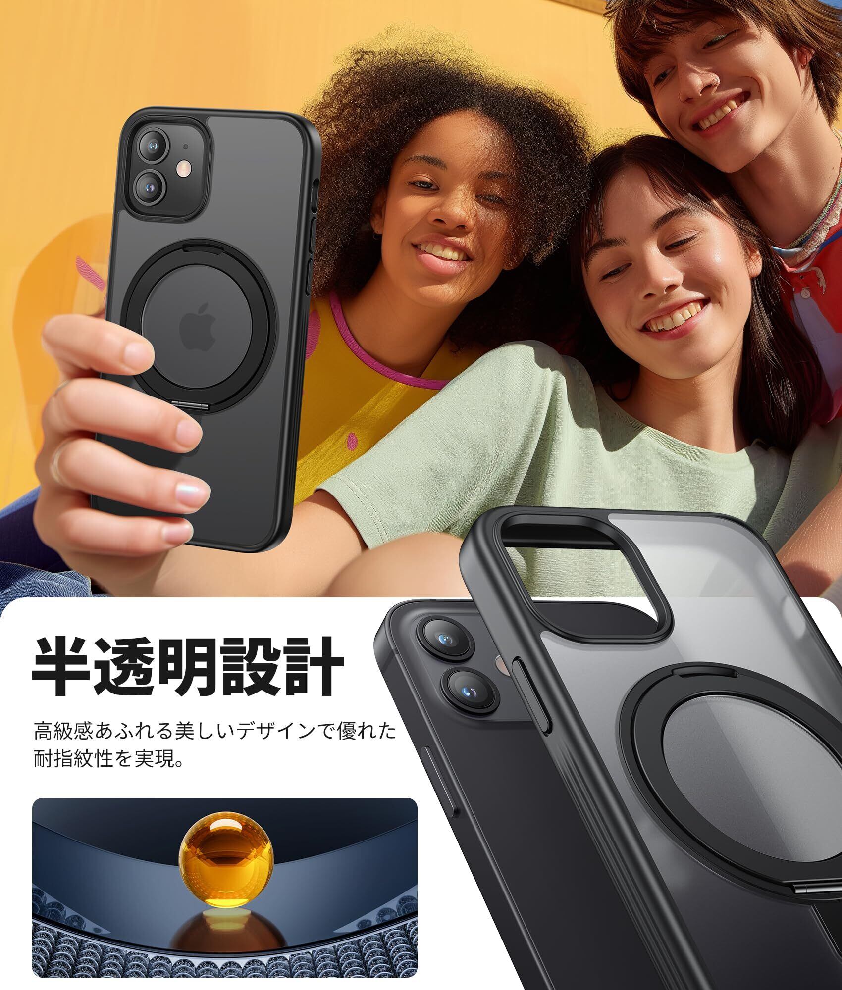 NIMASO iPhone 12/12Pro 用 ケース 縦横両対応 360°回転スタンドケース MagSafe対応 携帯スマホケース リングマグネット搭載 カバー ワイヤレス充電対応 iPhone 12/12 Pro 用 磁吸強化 マット感 防指紋 米軍MIL規格 耐衝撃性 アジャスタブルスタンド アイフォン12/12Pro対応 (6.1インチ) ブラック(黒羽シリーズ)NSC24K1549