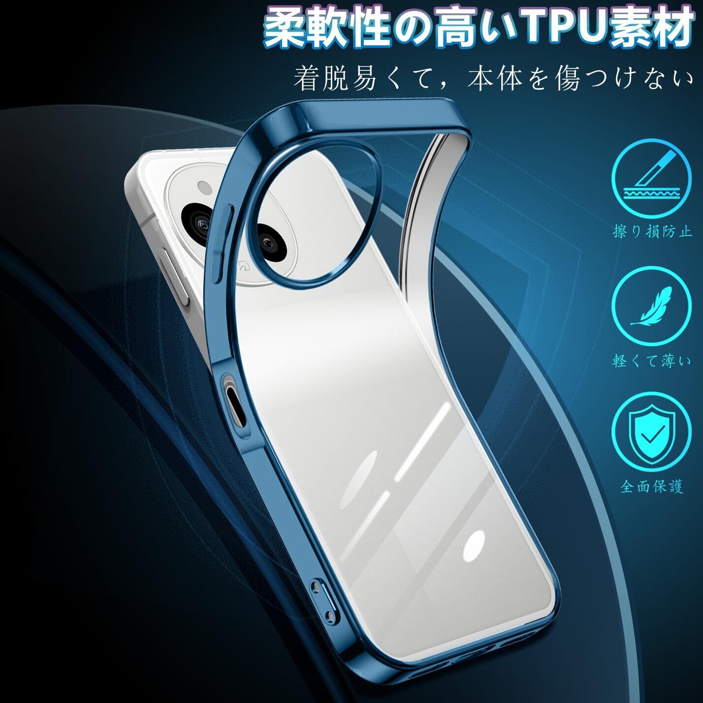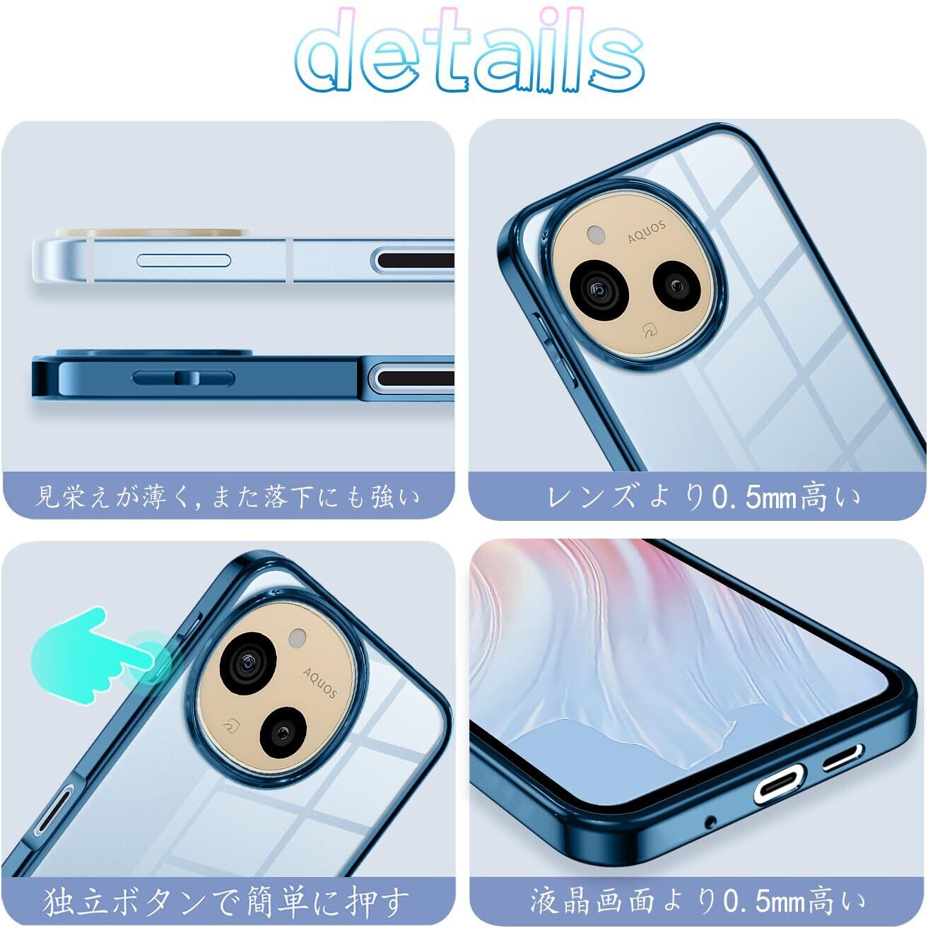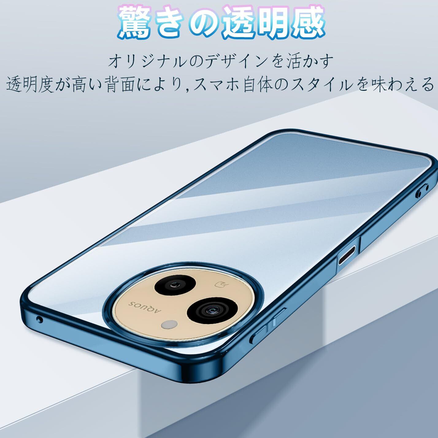 AQUOS sense10 / AQUOS sense9 ケース SH-53E SH-53F SHG14 SH-M29 SH-M33 クリア アクオスセンス9 耐衝撃 スマホケース 薄型 センス9 カバー TPU 透明 メッキ加工 軽量 ストラップホール付き (ブルー)