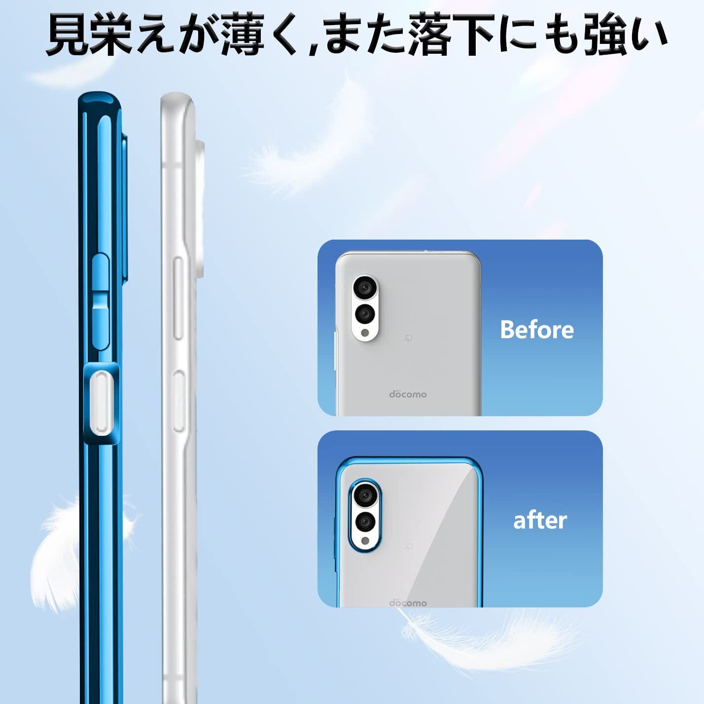 arrows N F-51C ケース クリア 透明 TPU 薄型 軽量 耐衝撃 メッキ加工 ソフトケース 人気 カバー(ブルー)