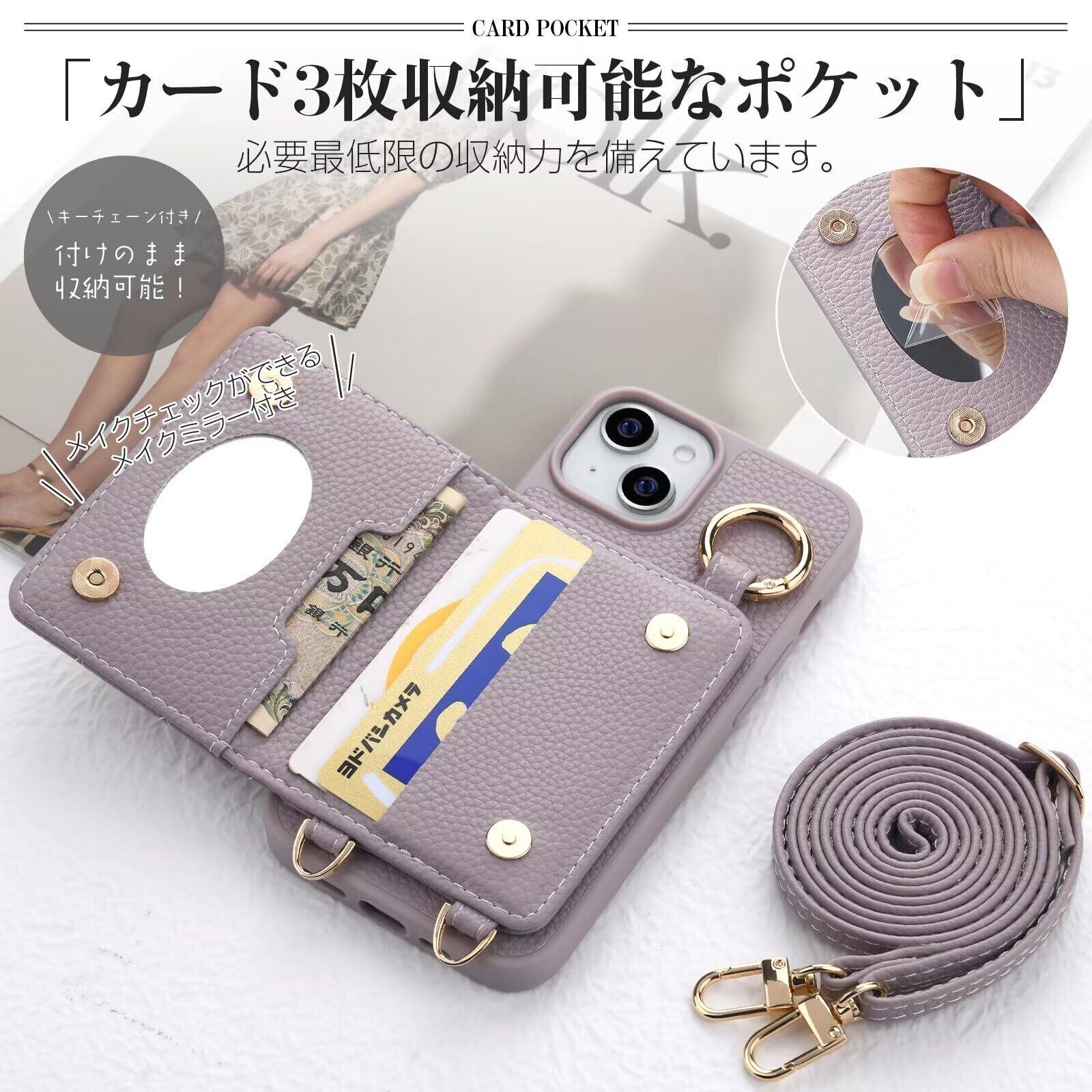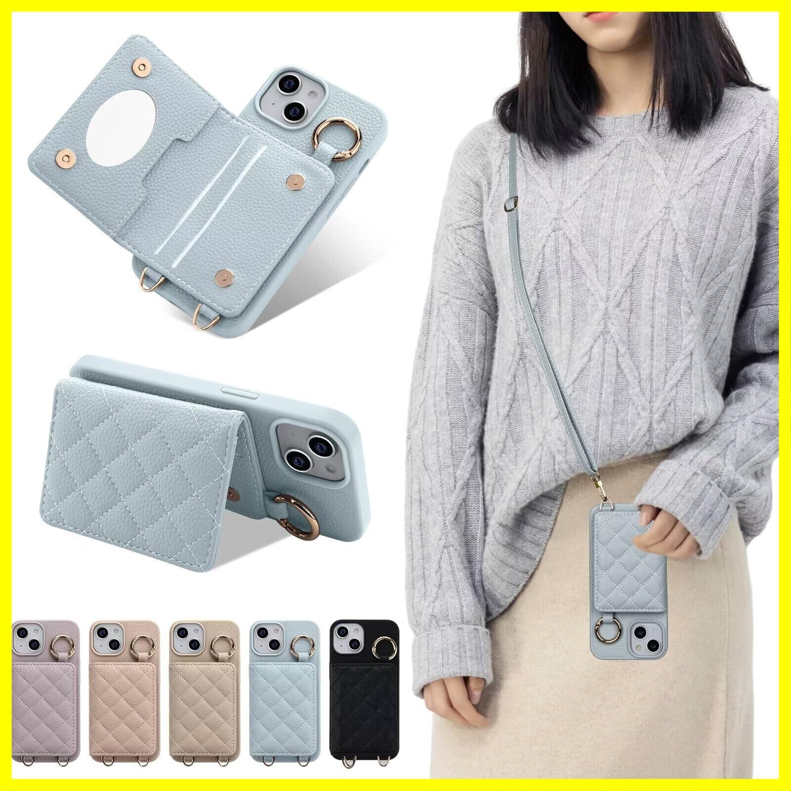 iPhone 13 スマホケース リング付きケース 手帳型 ショルダー チェック柄 アイフォン 13 ケース カード収納 肩掛け 斜めかけ ストラップ付き 携帯ケース 手帳 お財布付 ポケット付き 鏡付き(iPhone 13 (6.1")ブルー)