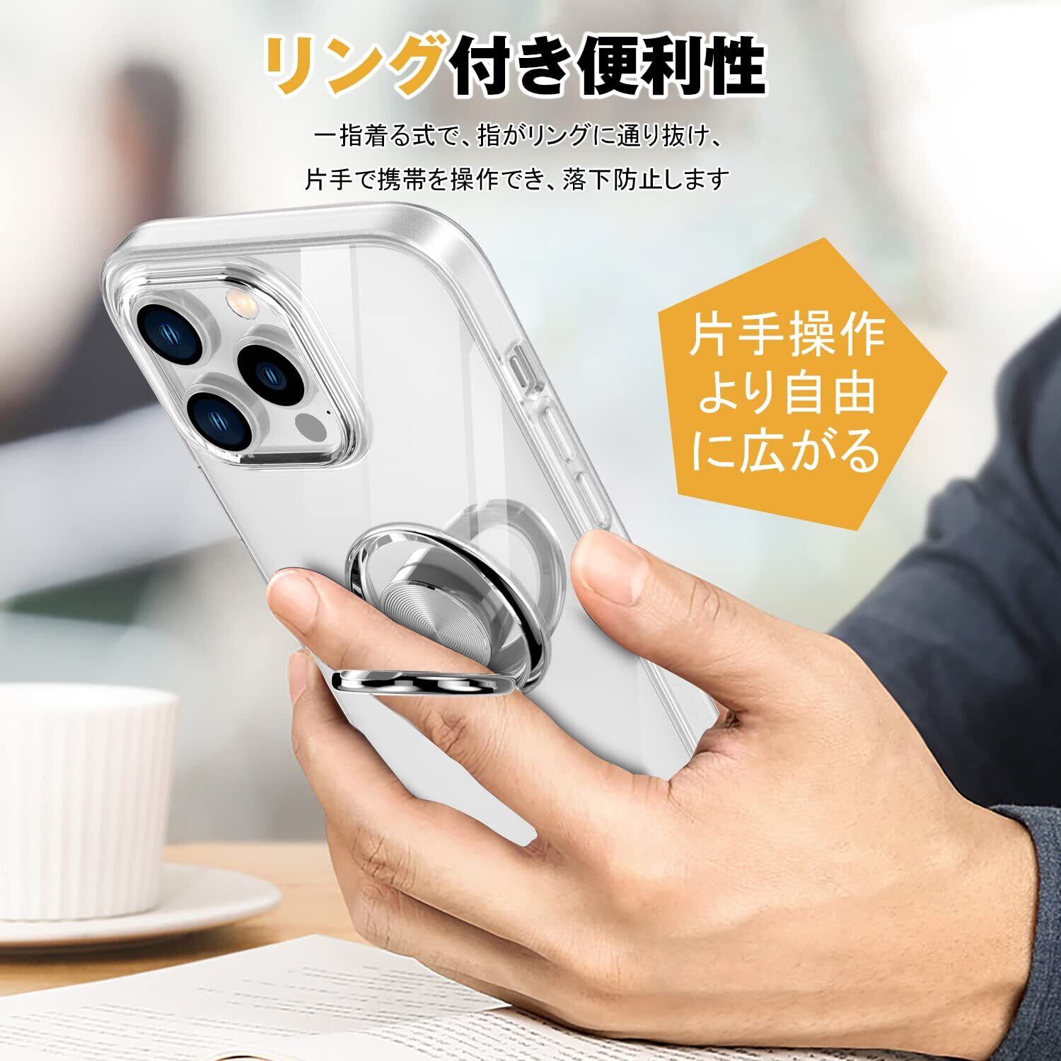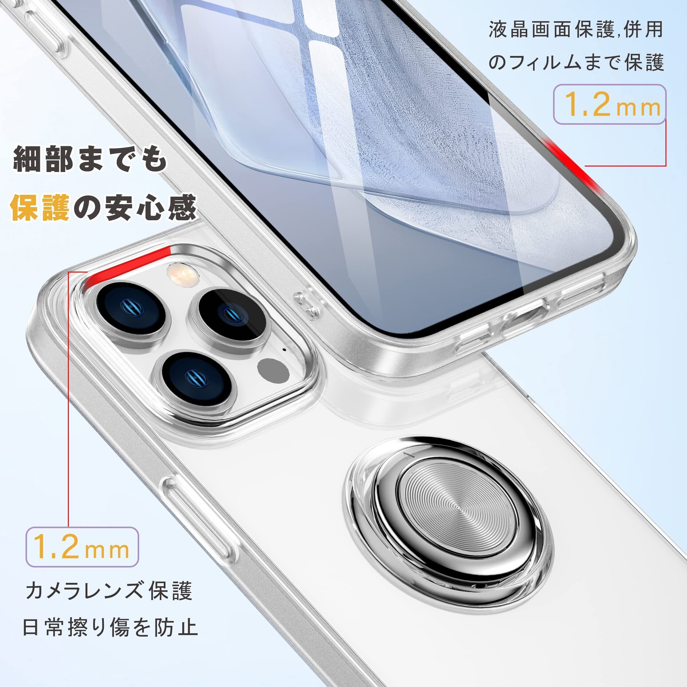 iPhone14 Pro 用 ケース リング付き スマホケース アイフォン14プロ クリアケース 透明 TPU ストラップホール付き 耐衝撃 スタンド機能 車載ホルダー対応 一体型 アイホン14Pro 携帯ケース カバー・クリア