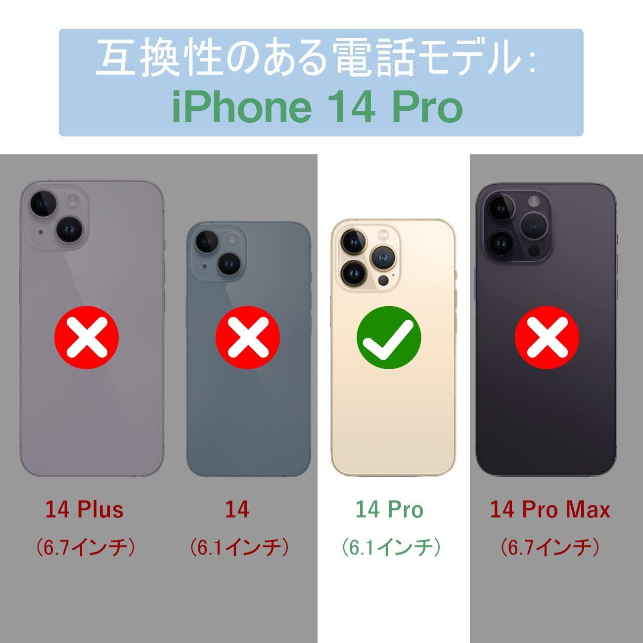 【対応機種】iPhone 14 Pro (6.1インチ) ケースに対応できます。※ご注意:お買い求めの機種を確認してからご購入をお願いします。※注意事項: ワイヤレス充電対応不可。