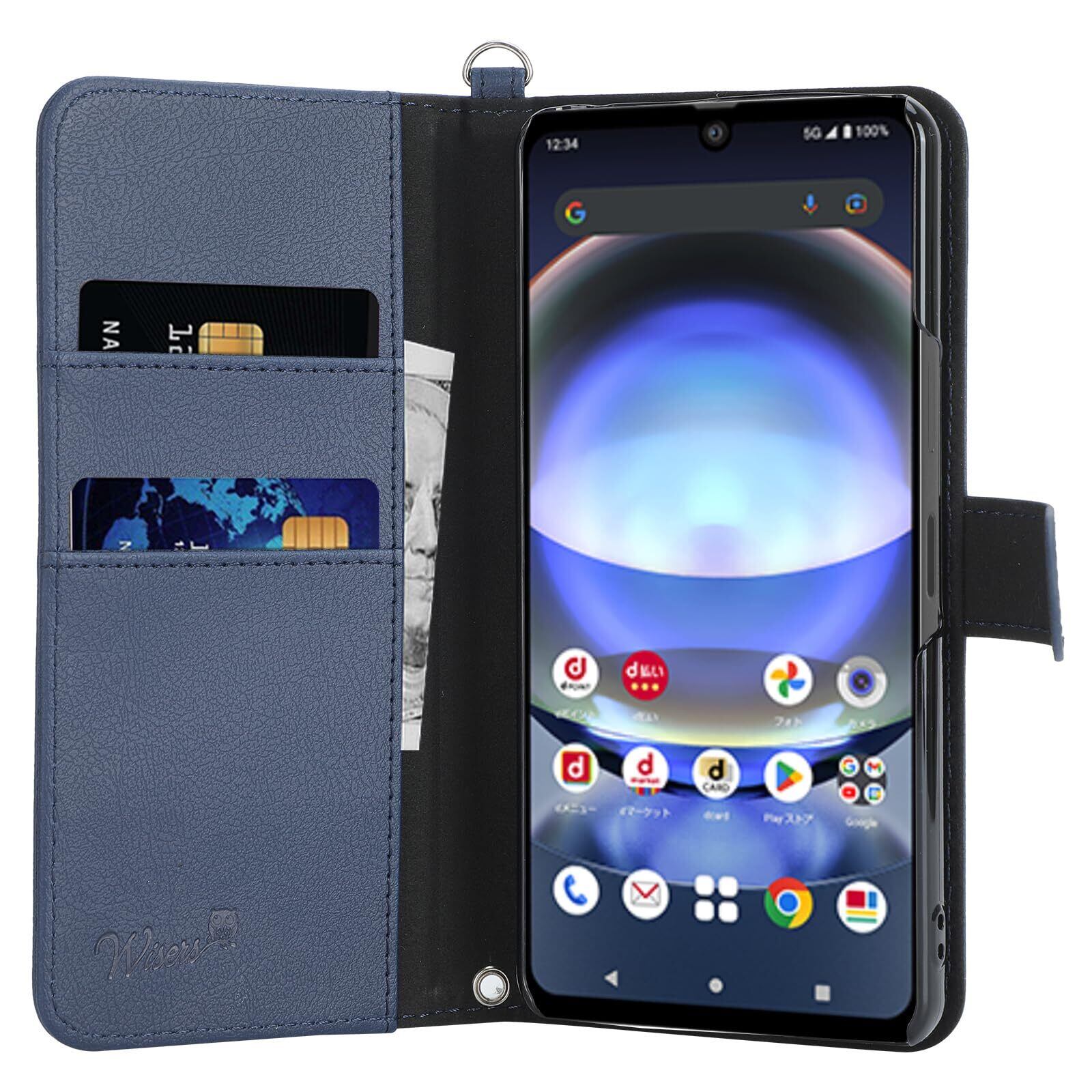 wisers AQUOS R8 SH-52D 対応 手帳型スマホケース (ダークブルー) ストラップ 2種付き (ハンドストラップ/ネックストラップ) 2023年 新型