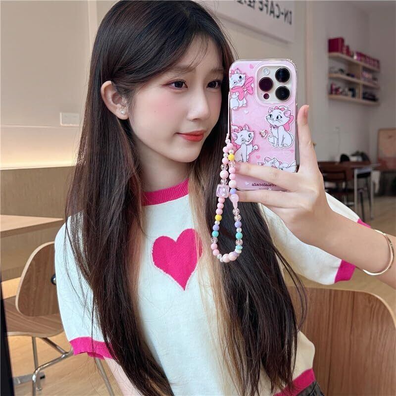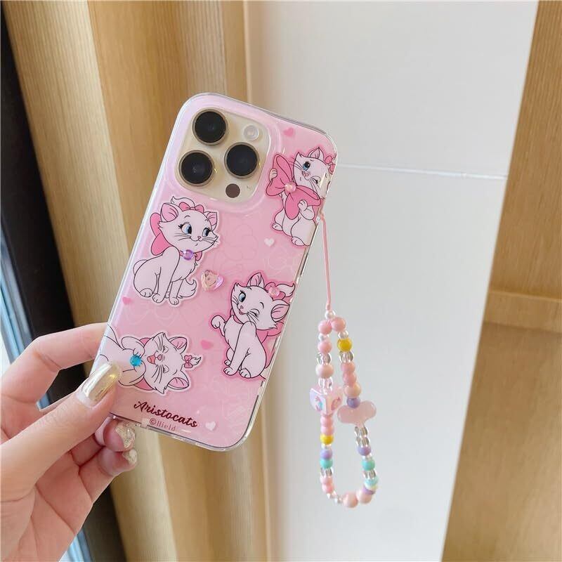 マリーちゃん スマホケース ビーズ ストラップ付き iPhone14/ iPhone13/ iPhone12/iPhone11シリーズ に適用 アイフォンカバー アップルケース iphone14proケース 保護カバー 質感 耐衝撃 落下防止 おしゃれ かわいい ステッカー付き ピンク 韓国 (Color : マリーちゃん, Size : Iphone13promax)
