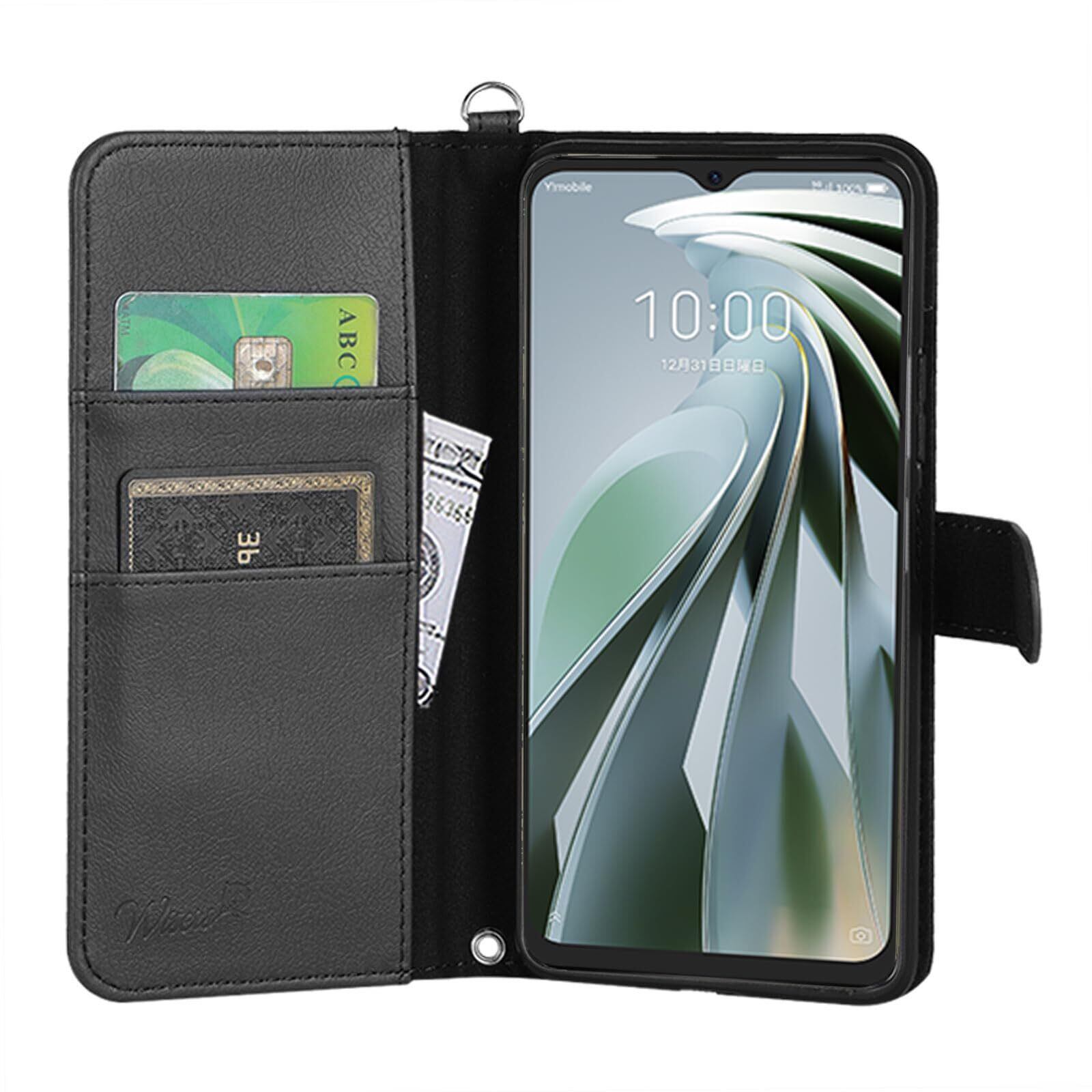 wisers Libero 5G IV 対応 手帳型スマホケース (ブラック) ストラップ 2種付き (ハンドストラップ/ネックストラップ) 2023 2024 年 新型
