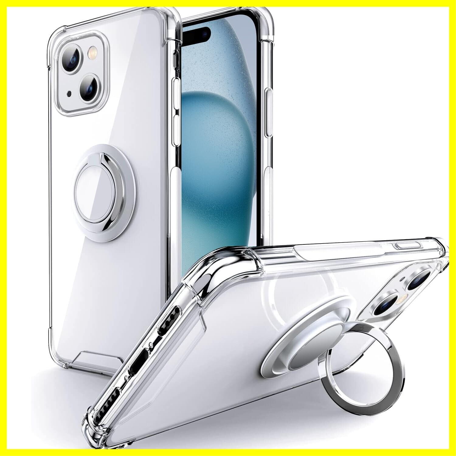 Rockaway 互換性 iPhone 15用 ケース リング付き 耐衝撃 耐久 すり傷防止 滑り止め スタンド機能 軽量 薄型 クリア TPU 透明 スマホケース アイフォン15 用カバー 6.1インチ - クリア