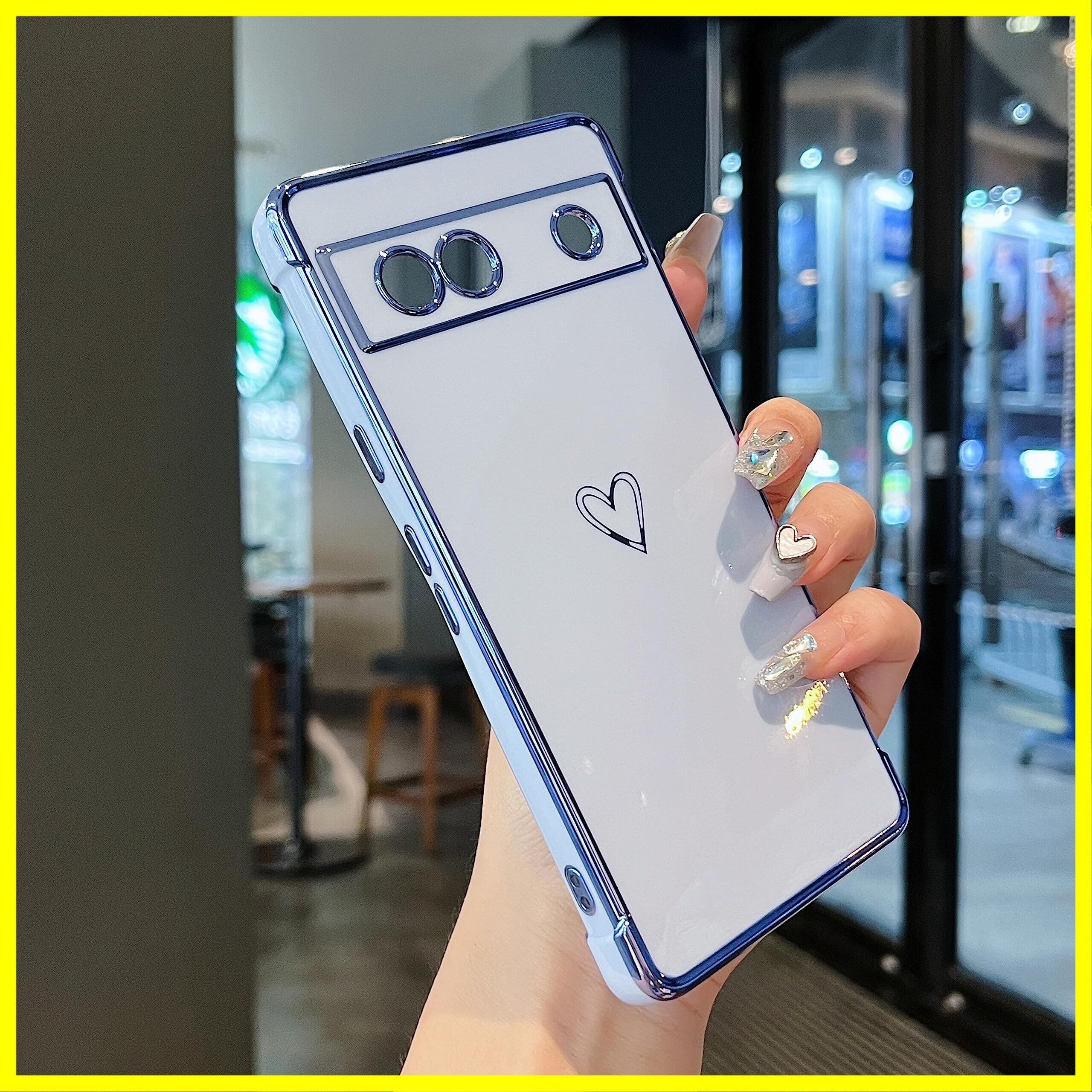 ZTOFERA Google Pixel 7a 用 ハートケース 柔軟な TPU シリコン メッキ加工 ソフト 軽量 耐衝撃 おしゃれ 韓国 可愛い Google Pixel 7A ケース 携帯カバー 女性 心パターン スマホケース ワイヤレス充電対応 (シエラブルー)