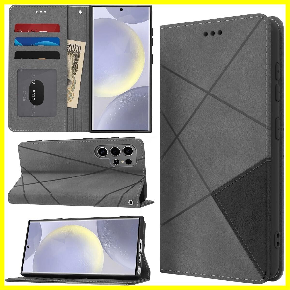 Galaxy S23 Ultra ケース 手帳型 財布型 耐衝撃 ギャラクシー S23Ultra スマホケース カード収納 横置き機能 SC-52D SCG20 携帯カバー 横置きスタンド機能付 ラップホール付き マグネット内蔵 擦り傷防止 肌感レザー 防水 耐摩擦 ファッション (グレー)