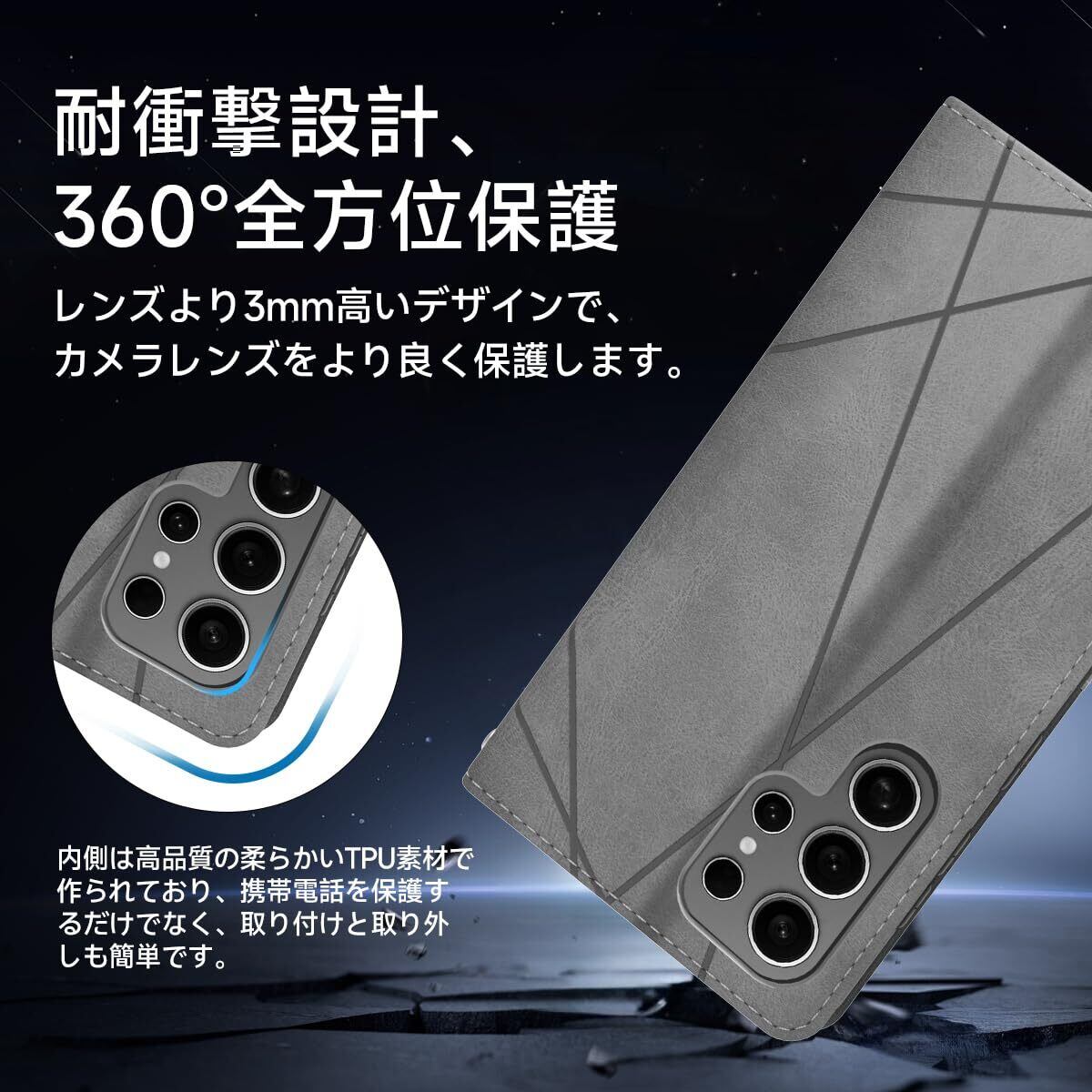 【プレミアム素材の選択】高品質のPUレザーと柔らかいTPUの組み合わせ。厳選された肌に優しい革と絶妙な縫製技術、芸術品のような精緻さと高級感をもたらしますそして肌のような手触り感。TPU素材を使用したソフトカバーにより、軽量と耐衝撃を兼ね備えました、また、柔らかいTPUカバーは取り付け・取り外しが簡単で、スマホ本体への損傷の心配ありません。