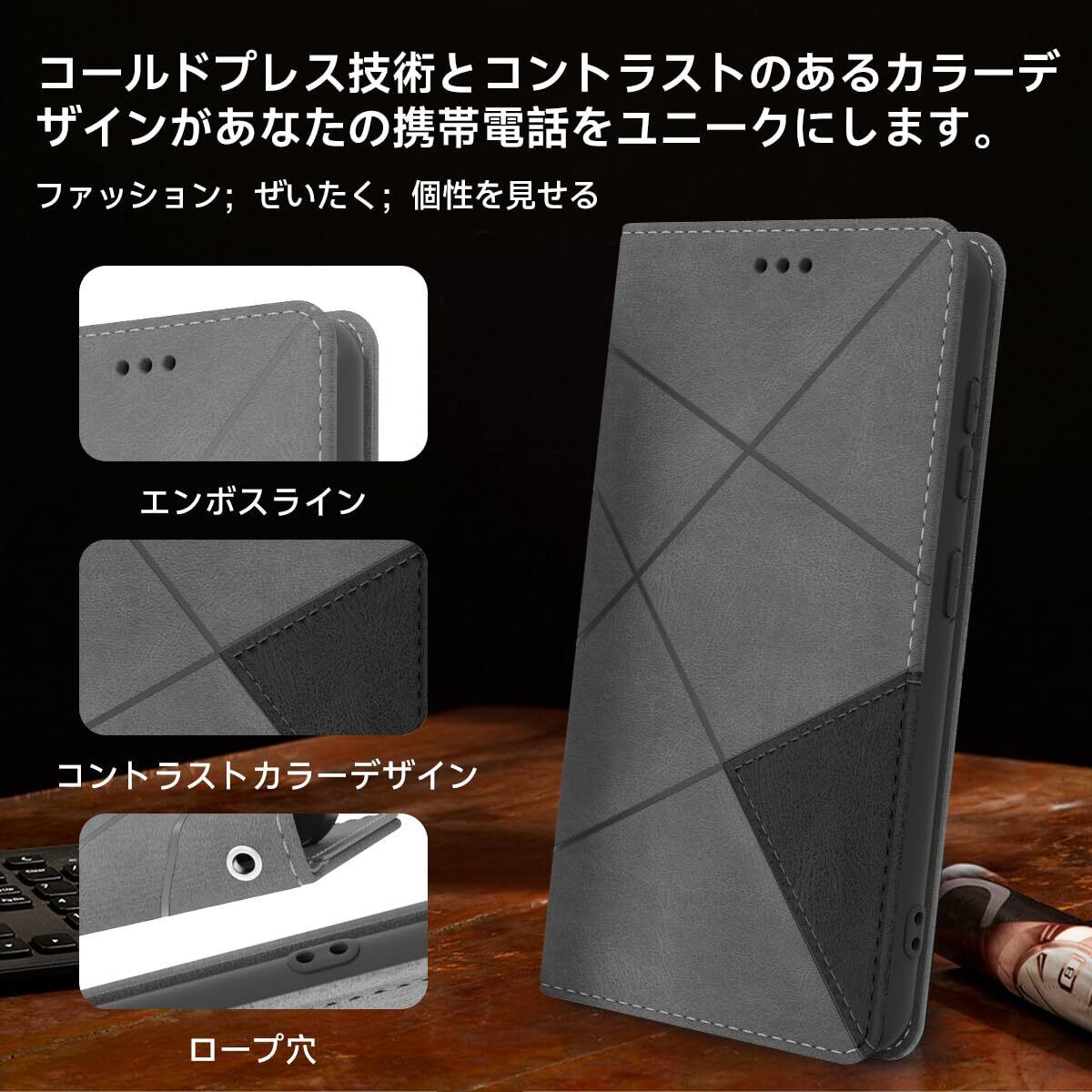 【スタイリッシュな外観デザイン】コールドプレス加工により革がより立体的になり、手触りが良くなります。コントラストのあるカラーデザインで単調にならず、2色の組み合わせがおしゃれ感を高めます。シンプルなデザインを使用して、ファッションと高級感を表現します。ストラップホールを搭載しているので、お好みのストラップをつけて、をよりおしゃれに飾れます。