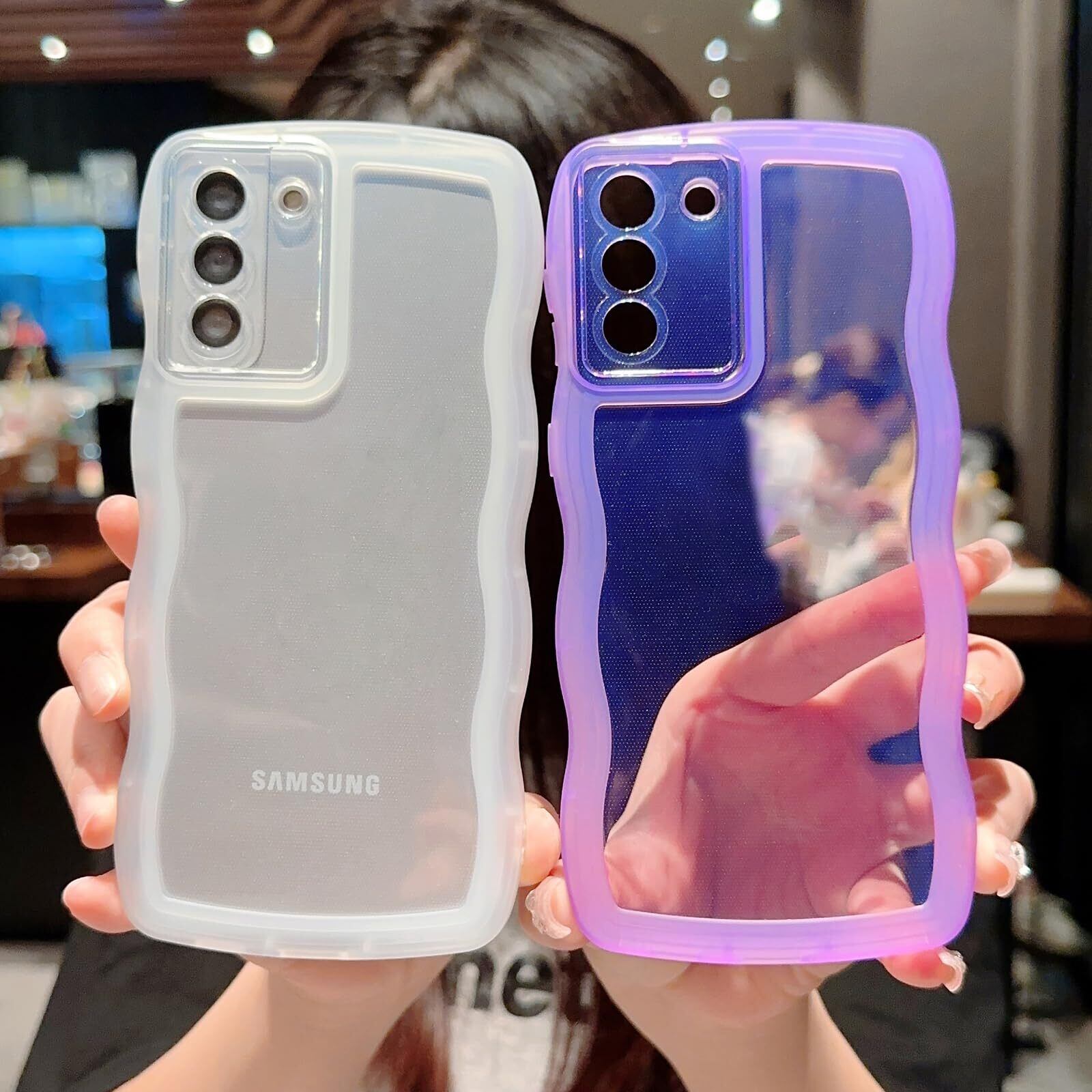 透明感 ▪ フィット感:背面は透明度ポリカーボネートの素材で、Galaxy A52本来の美しさと高級感をそのままに映り出し、あなたの携帯電話は、より美しさとファッションに見えるようにします。サイド周りのウェーブ部分は柔らかな素材のTPU素材で、デザインが手にフィットして持ちやすく、可愛い、流行りの韓国デザインです