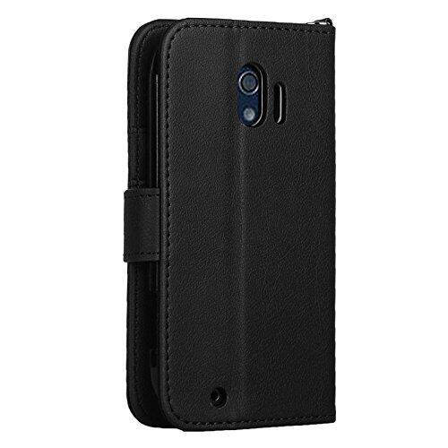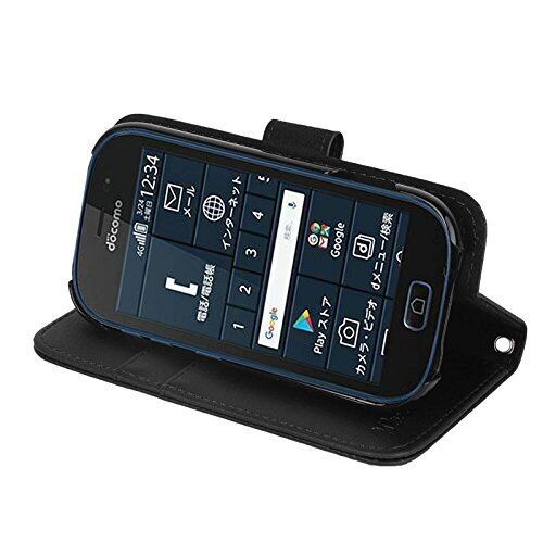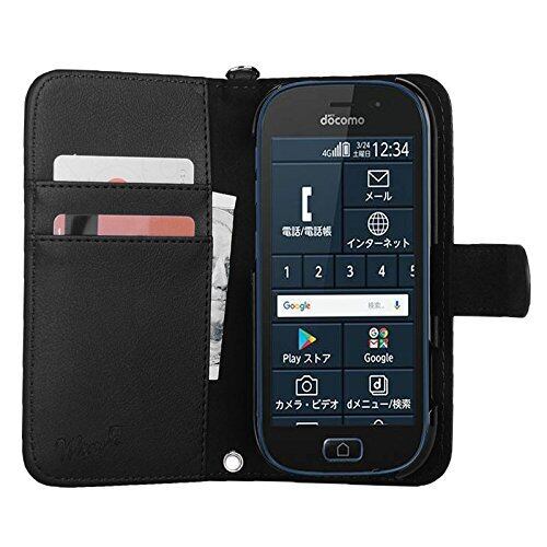 wisers らくらくスマートフォン me F-03K 対応 手帳型スマホケース (ブラック) ストラップ 2種付き (ハンドストラップ/ネックストラップ) 2018 新型