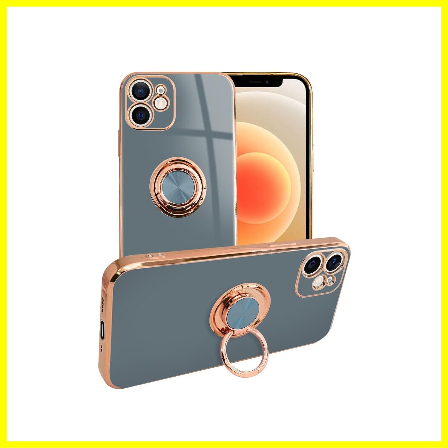 シズカウィル iPhone12 mini スマホケース スマホリング グリッティア リング付きケース 1個入り ブルーグレー