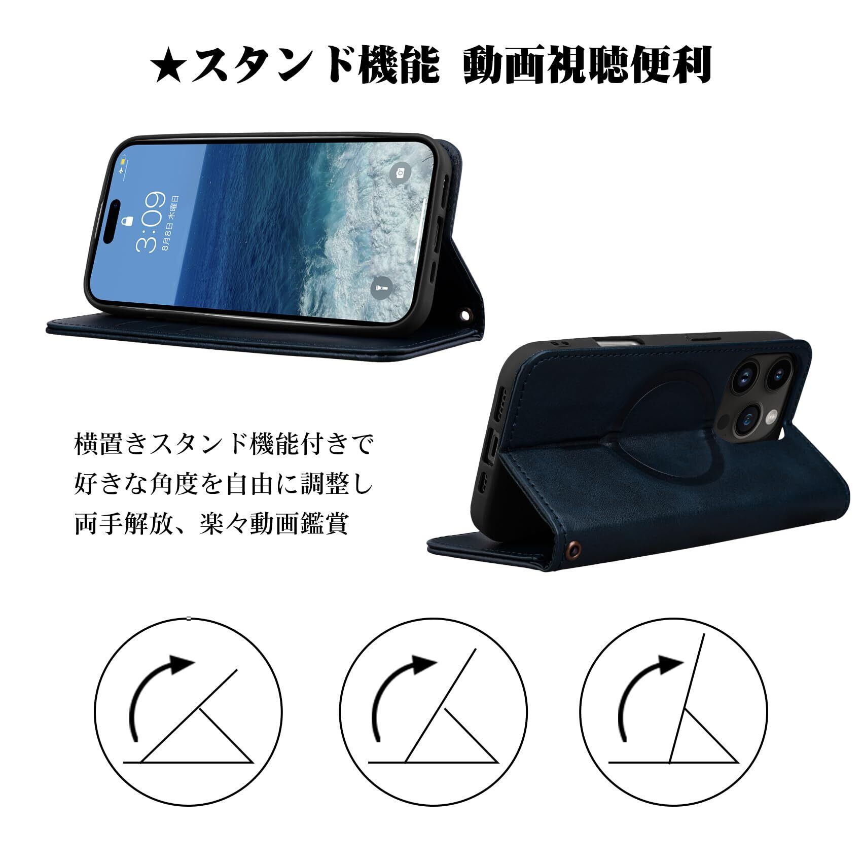 スタンド機能:このiPhone 16pro 用 カバー手帳型はスタンド機能が付いて、横向いて斜めに立てて、お好きな角度に調整することができ、長時間の視聴でも疲れない。