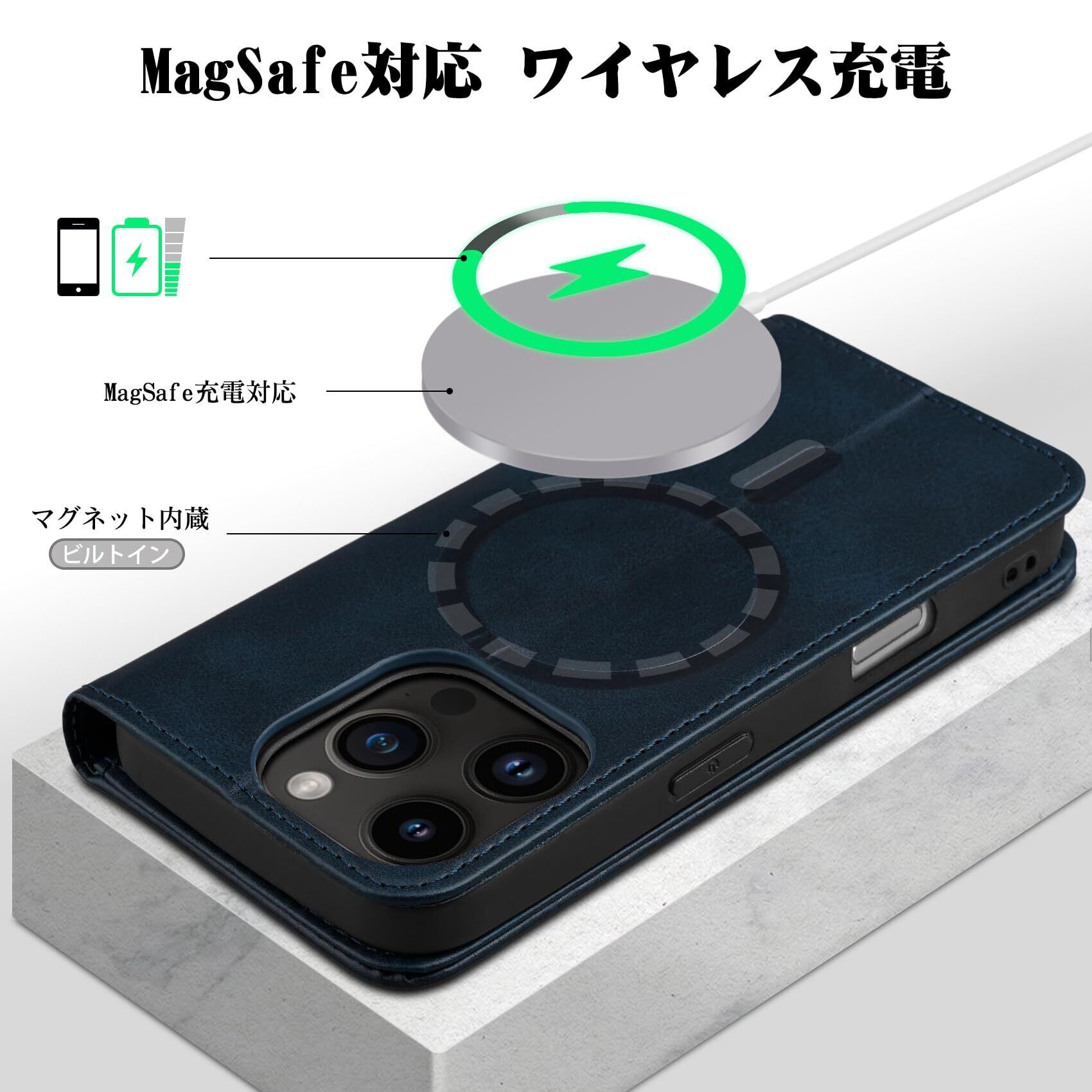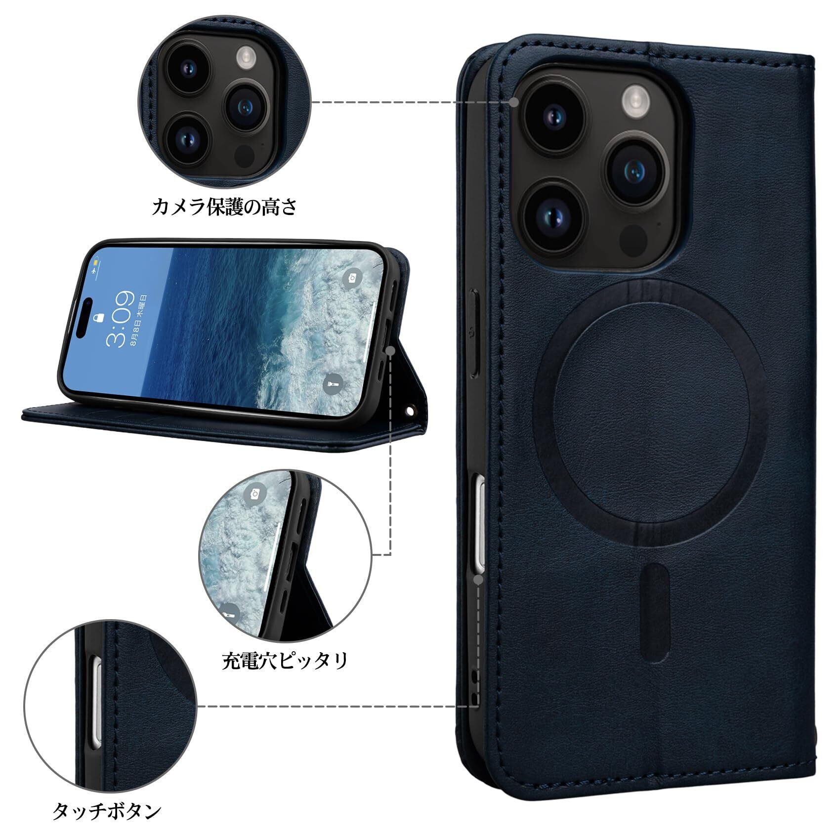Rssviss iPhone 16 Pro 用 ケース 手帳型 MagSafe対応 iPhone16 pro 用 カバー 手帳型 マグセーフ対応 カード収納 iPhone 16 pro 専用 手帳型 ケース ワイヤレス充電対応 スタンド機能 iPhone16 pro 専用 ケース 手帳 マグネット付き iphone 16 pro 用 ケース magsafe対応 6.3 inch対応 W1M ブルー