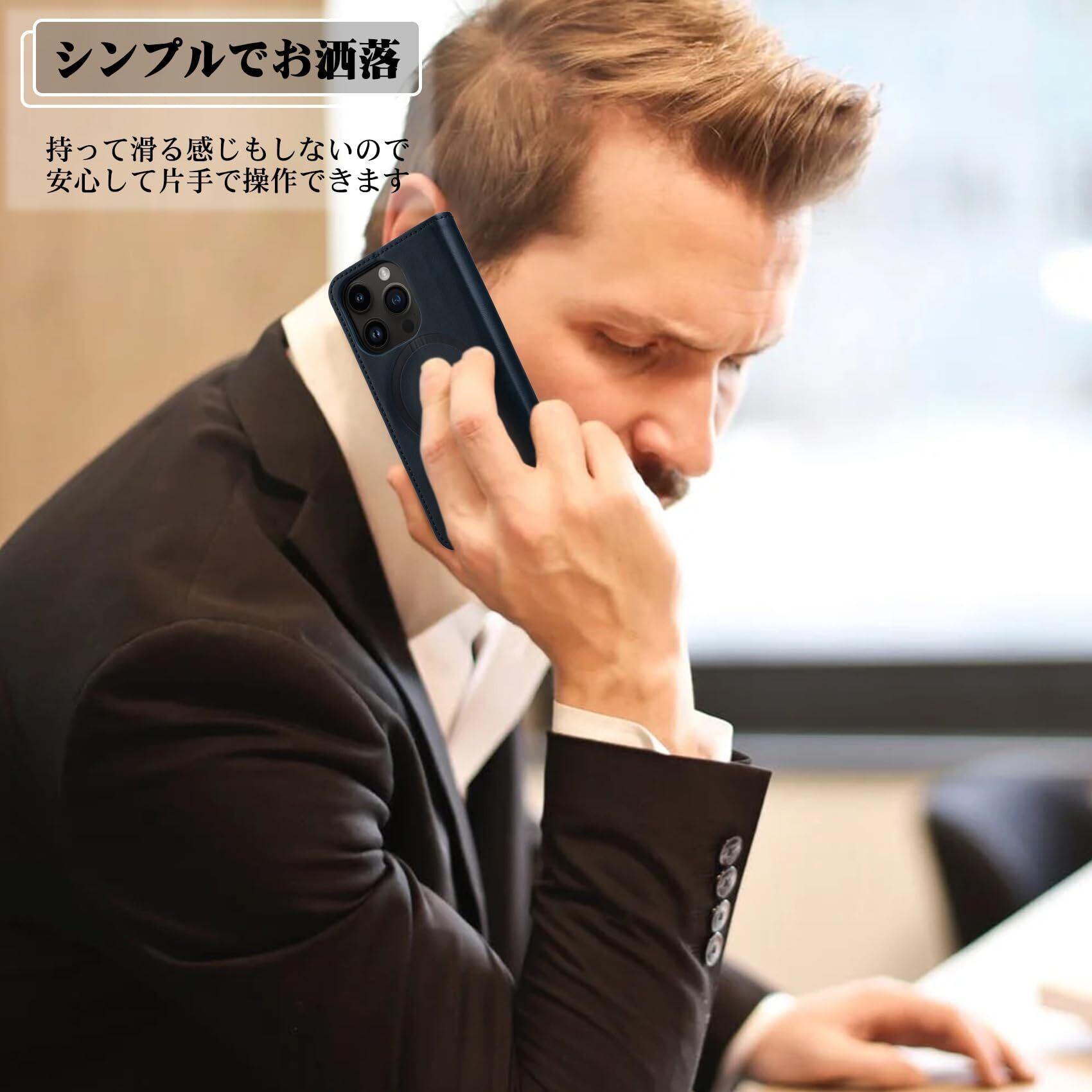 ビジネス専用ケース:衝撃吸収性と柔軟性に優れたTPU素材を採用し、画面より少しだけ高く設計されたコーナーが全周をカバーしているのであらゆる角度からの落下に対して安心感が増やしています。オシャレ大人のiPhone 16 Pro 用 手帳型ケースです。