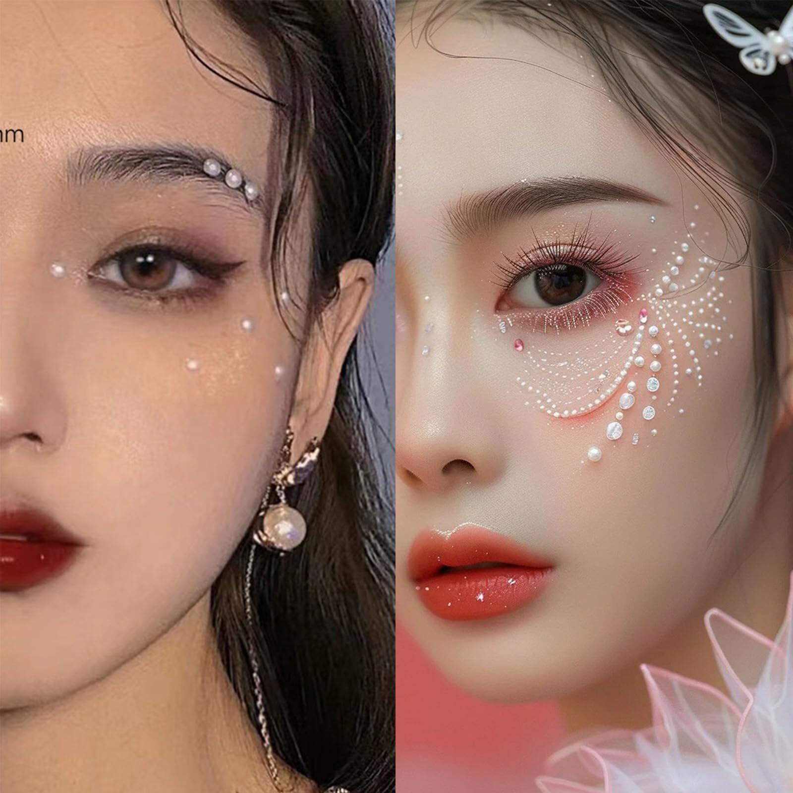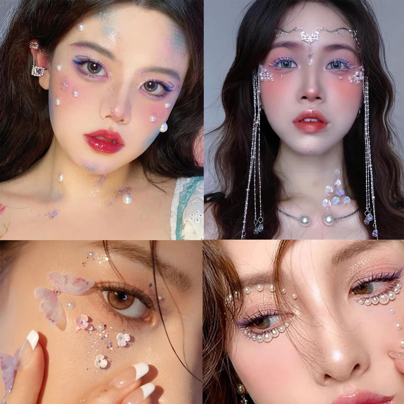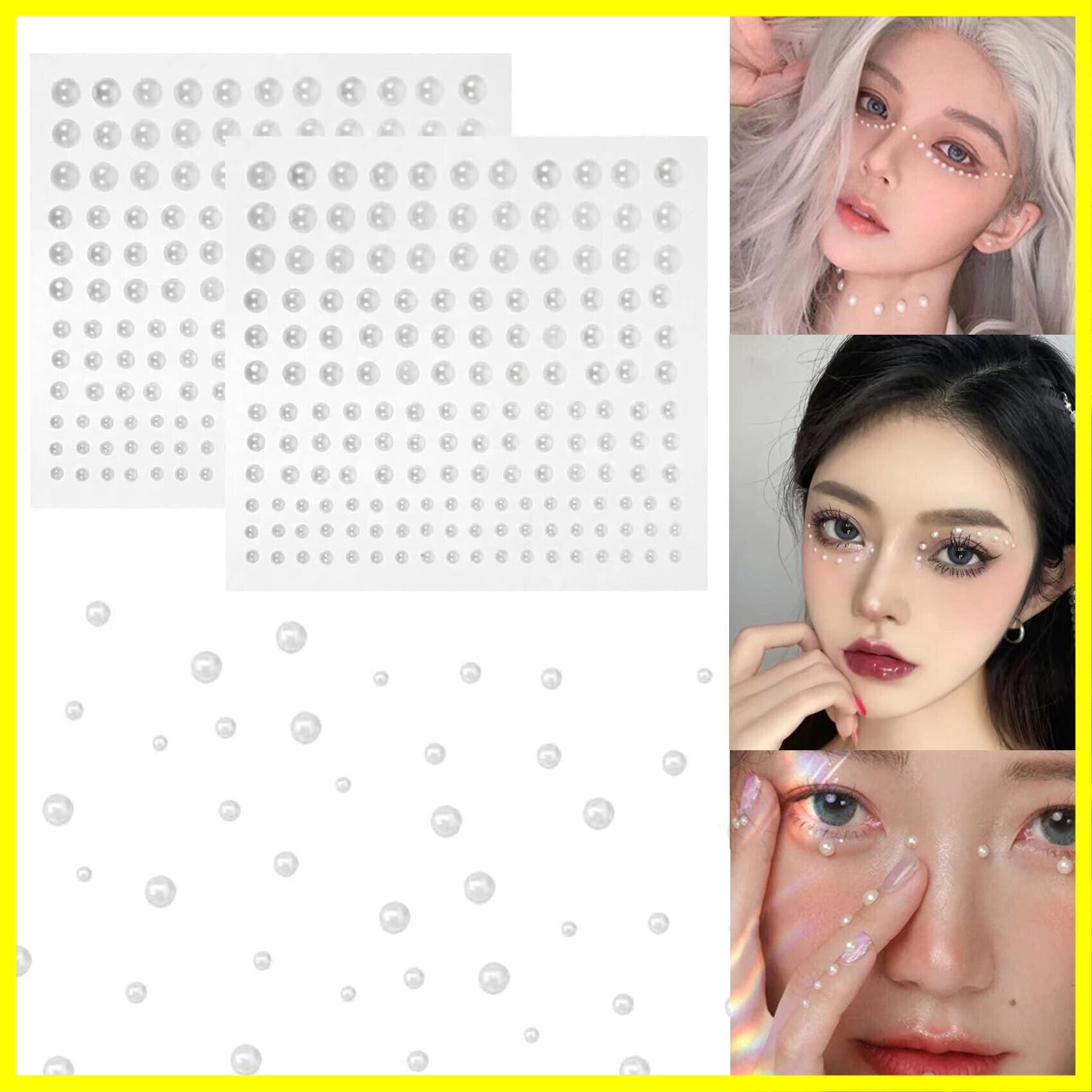 【仕様】8枚セット、純白、4種類のサイズ、3/4/5/6mm、パックごとの165pcs、合計1320個の真珠。特にフェイスデコレーションに適しています