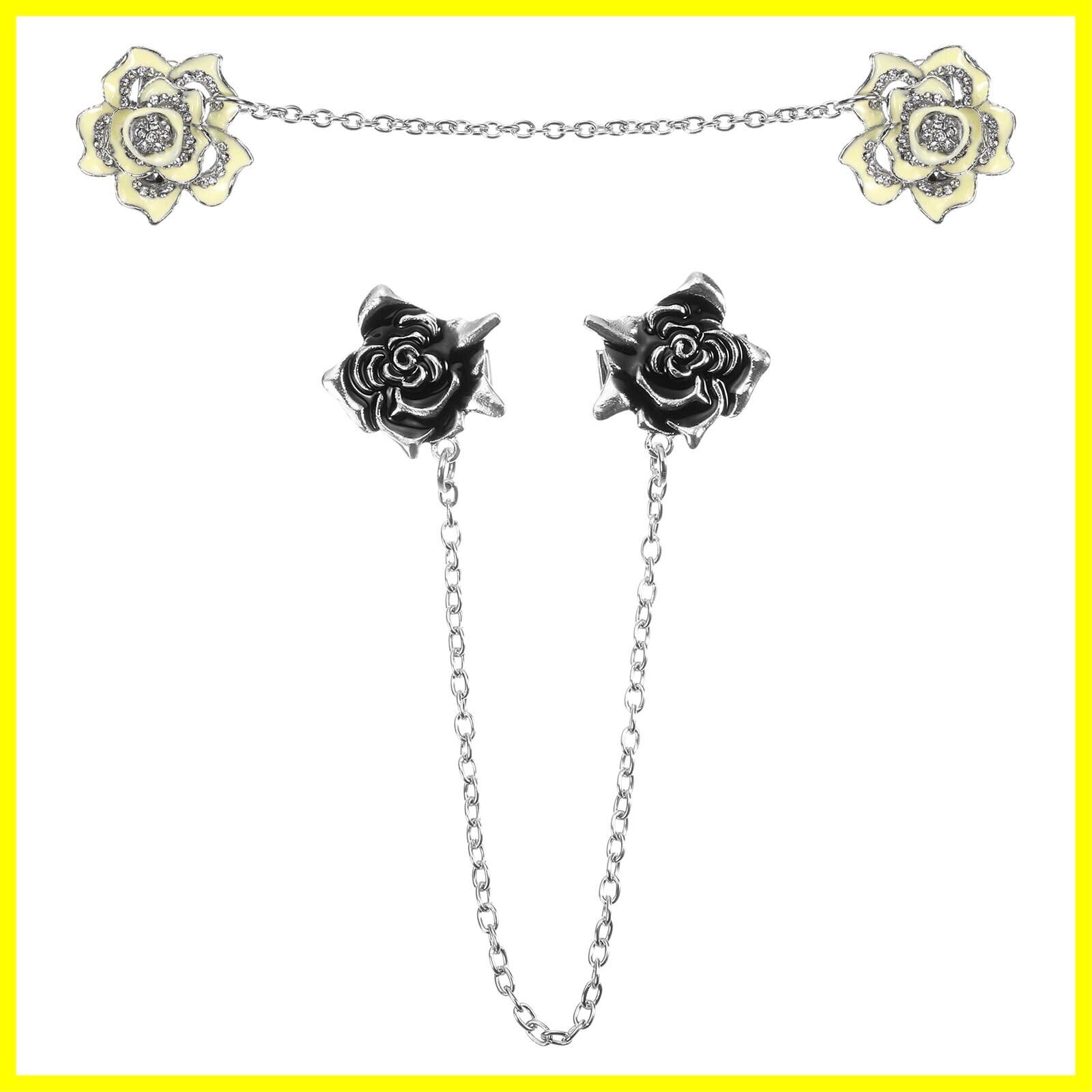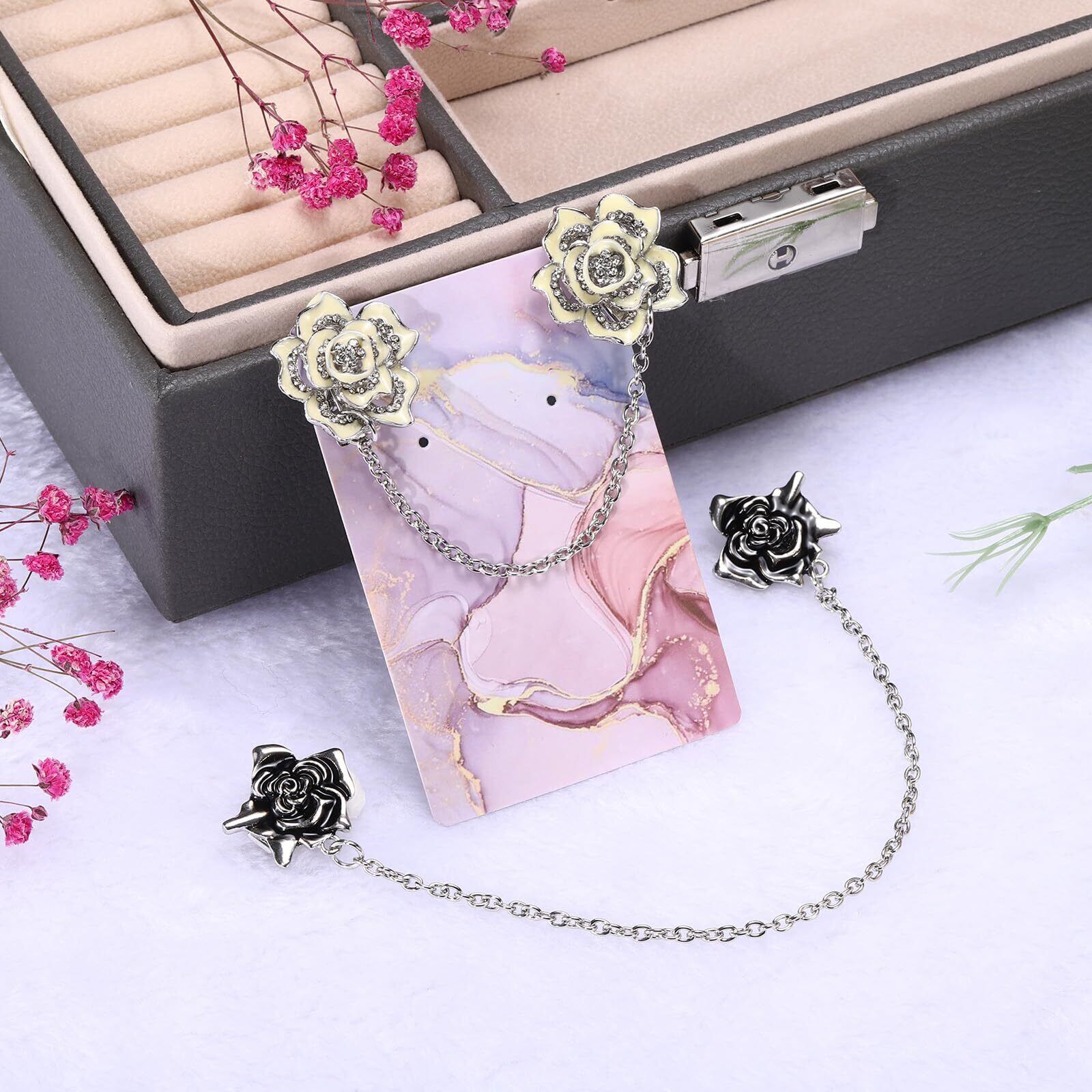 uxcell セータークリップ 花 レトロフラワー カーディガンの襟クリップ チェーン付き シャツクリップ ショールクリップ 洋服クリップ 女性用 2個