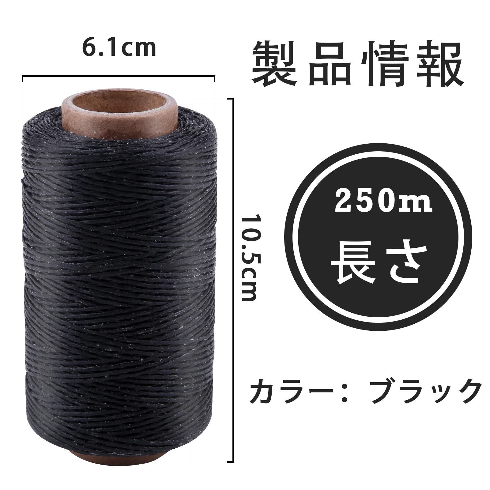 ブラック 274 ヤード 蝋引き糸 ロウ引き糸 ワックスコード 手縫い 編み 手芸 紐 DIY レザークラフト 糸 ろう引き糸 蝋引き紐 長さ250m 初心者
