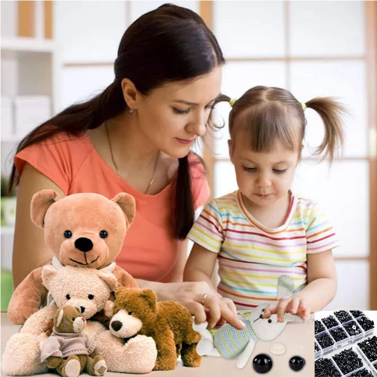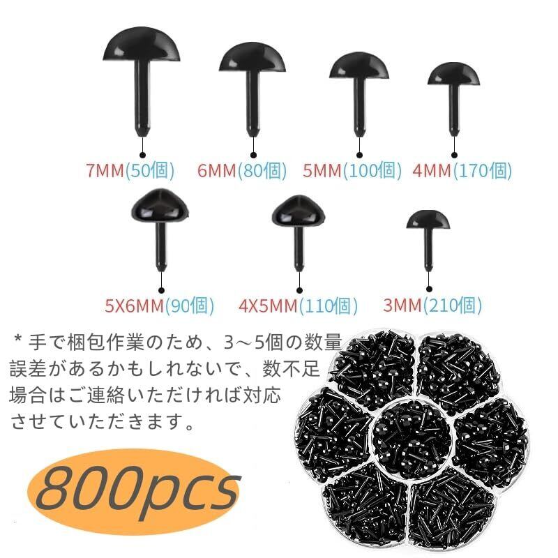 ✿【パッケージ内容】3mm/210個、4mm/170個、5mm/100個、6mm/80個、7mm/50個、4×5mm/110個、5×6mm/90個、約800個/箱。大容量、多サイズ、ニーズによりDIY、羊毛フェルト さし目、猫 さし目、さし鼻、人形、祭りの装飾品、ぬいぐるみ動物等にご自由に使えます。